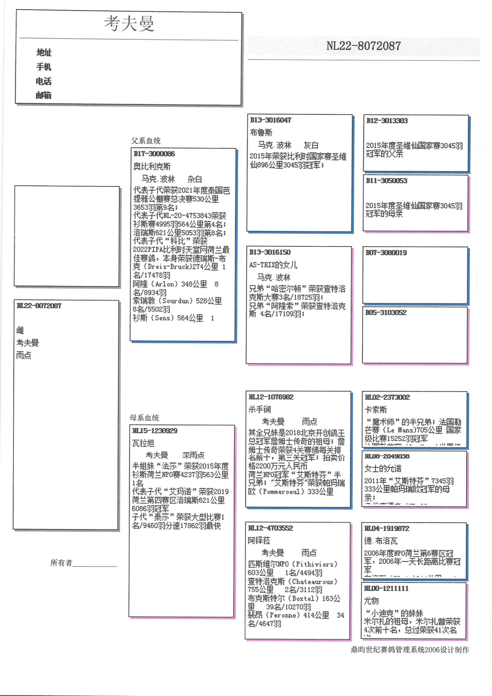 子代“阿玛诺”荣获:NPO 罗礼斯 IV 6086羽1名