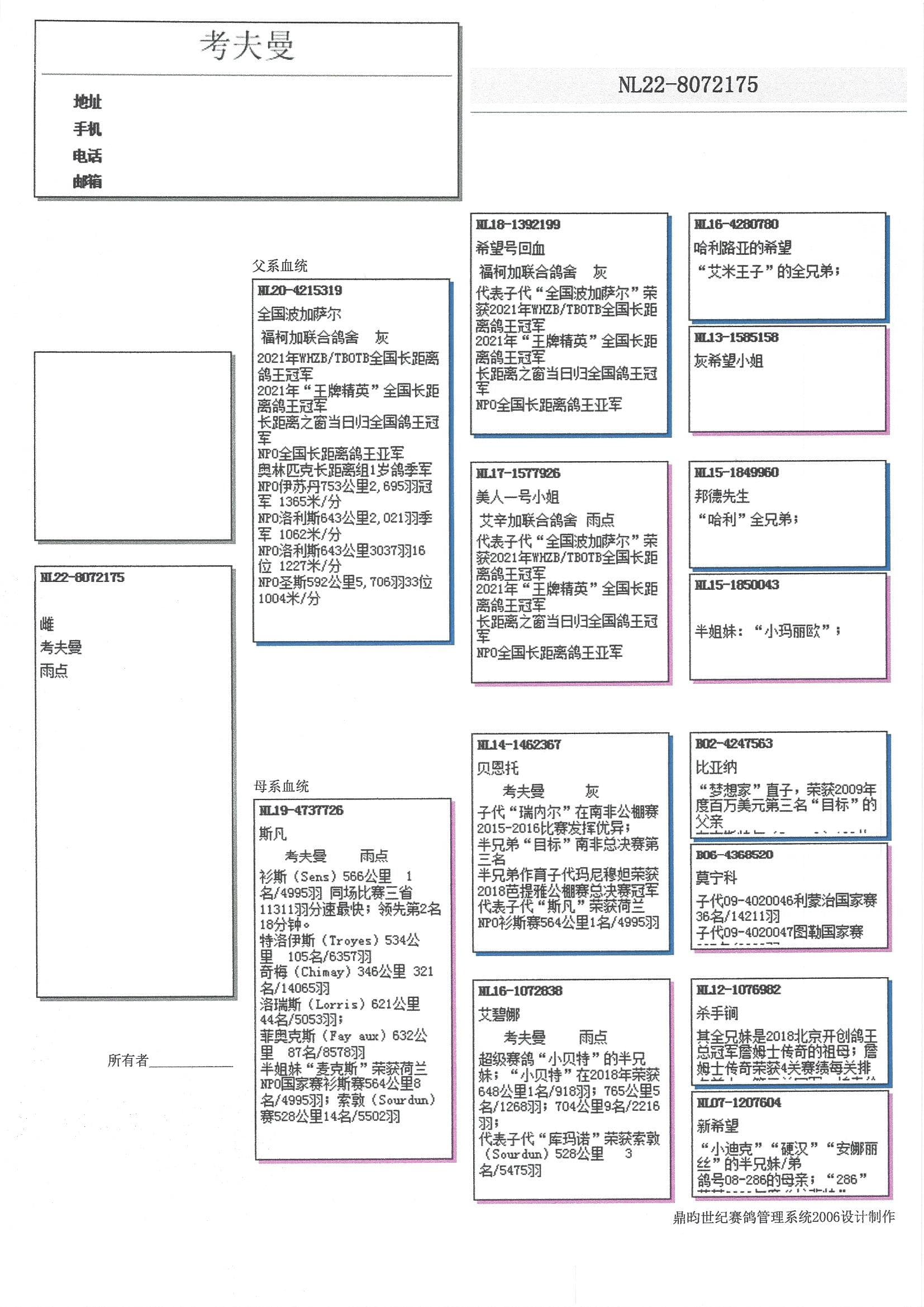 荣获: 21年WHZB一日长距离鸽王全国1位– 奥林匹克一日长距离鸽王3位– “王中王”鸽王全国1位 – “长距离之窗”鸽王全国1位 – NPO 伊苏丹1名 – 福金加使翔