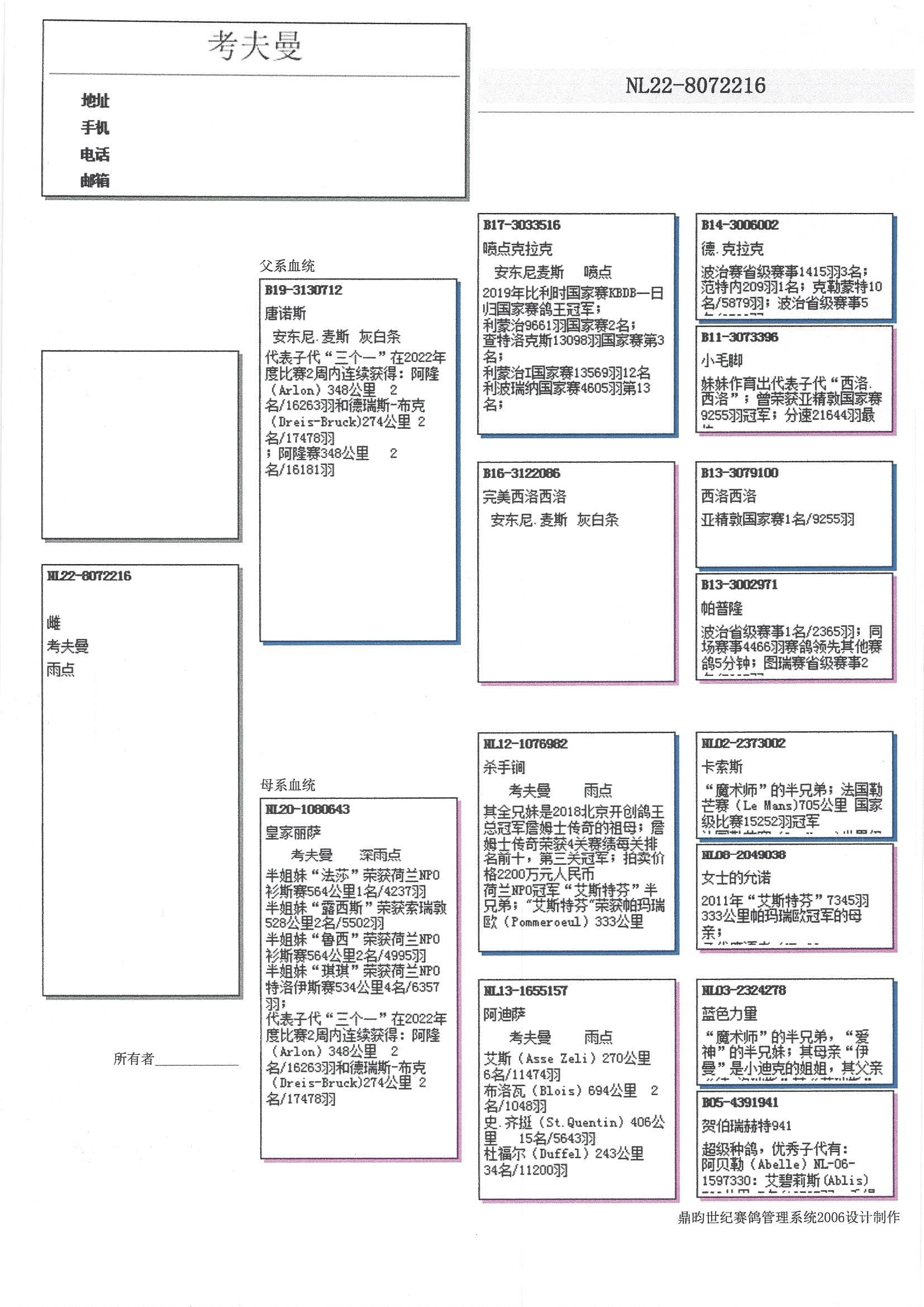 “杀手锏” x “阿迪莎” (16年NU一日长距离鸽王5位) 直女