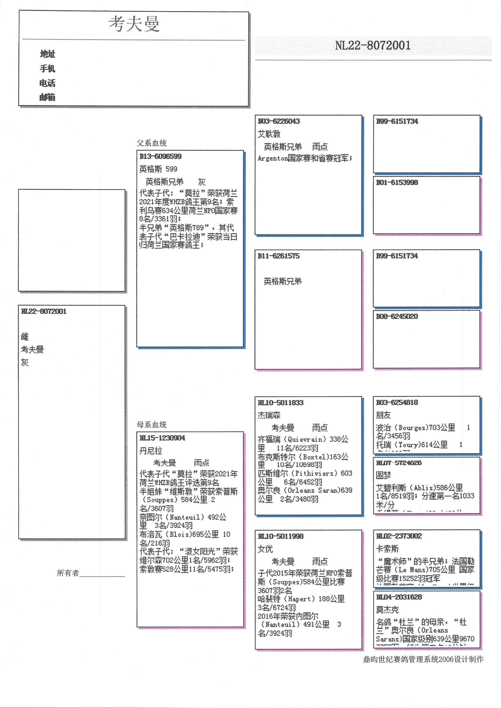 “英格斯 789”之半兄弟. “英格斯 789”的子代“巴卡拉迪”荣获: 一日长距离鸽王全国1位