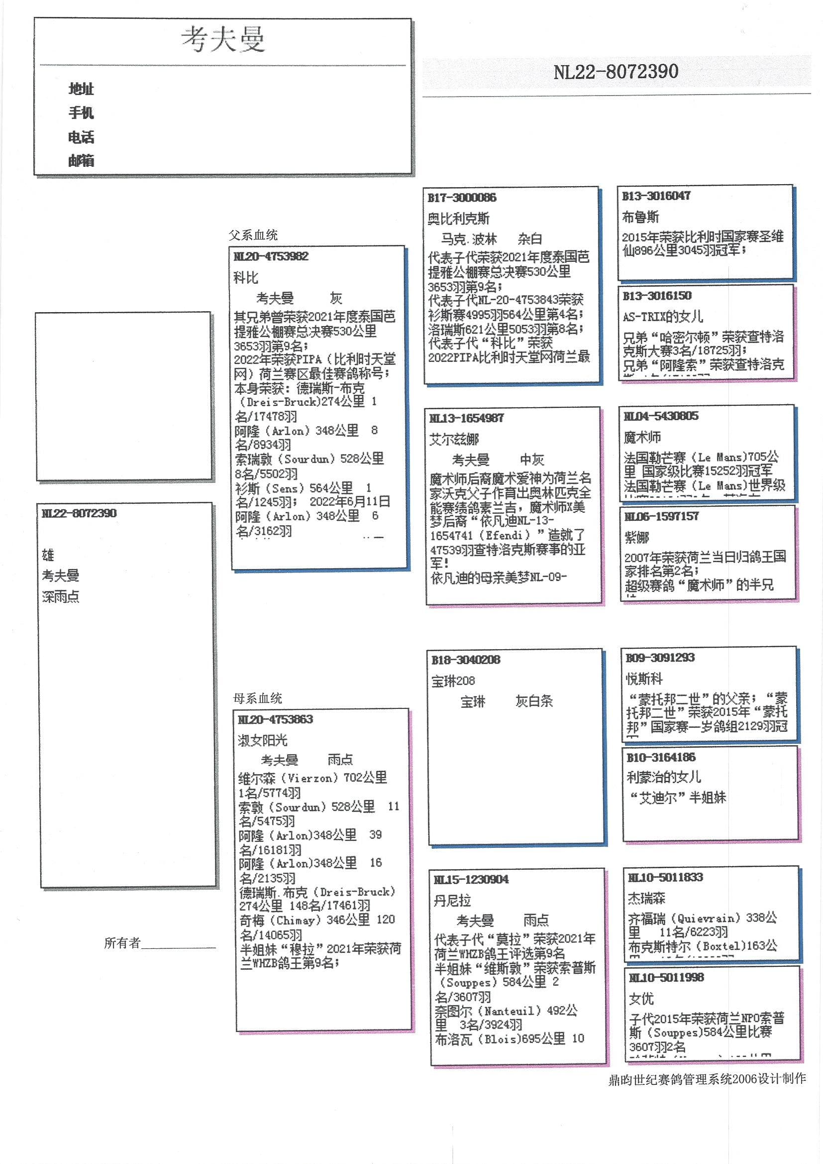 荣获: 22年Afd 10 综合鸽王7位