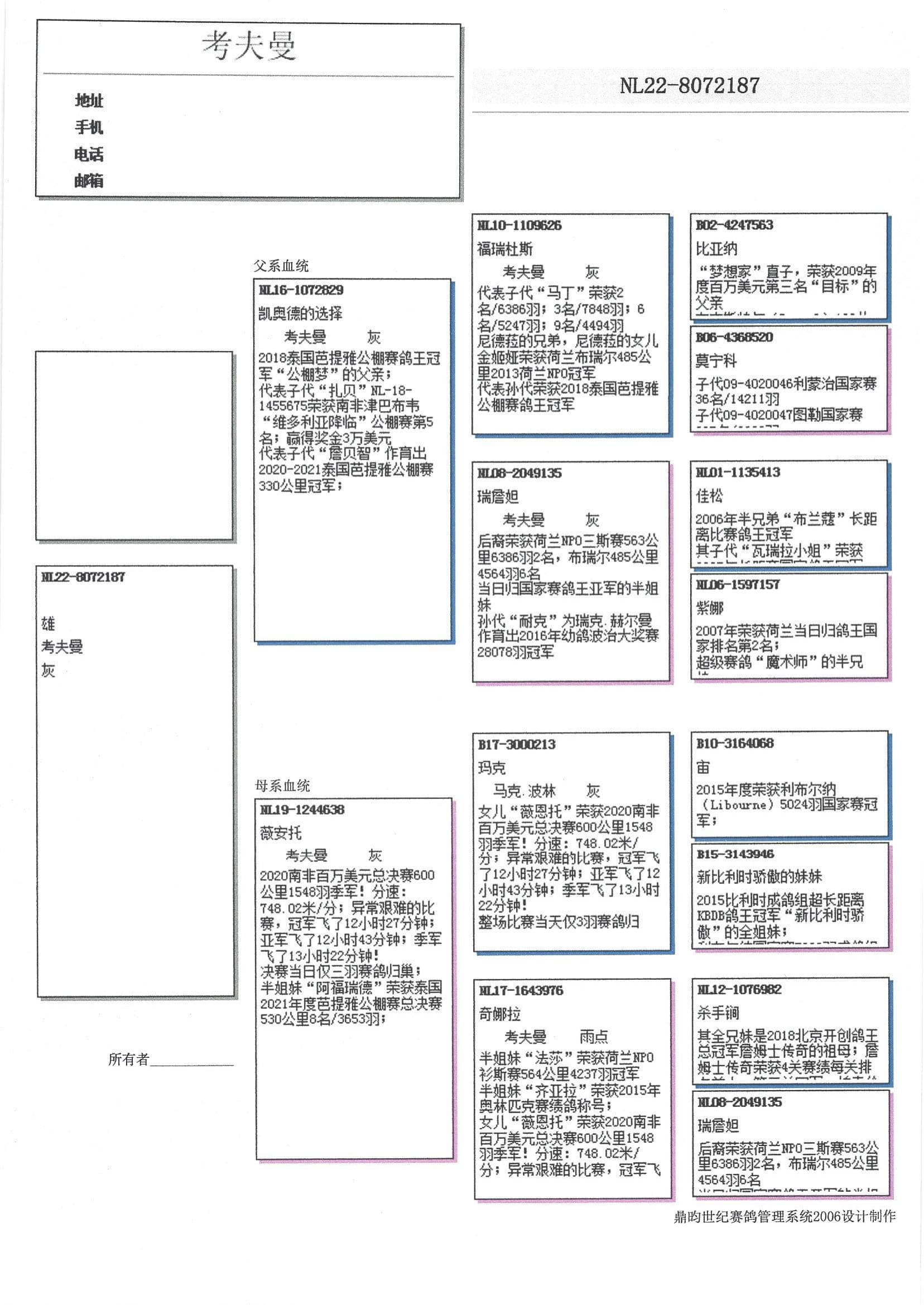 “宙” (莱邦纳国家赛 5,024羽1名 – 布瑞福国家赛 5,286羽7名 – 苏亚克国家赛 7,760羽18名 – 卡奥尔国家赛 6,576羽42名 – 图勒国家赛 5,976羽81名 – 利蒙治国家赛 14,271羽101名 等等) x “新比利时骄傲之姐妹”(全平辈“新比利时骄傲”荣获鸽王全国1位以及莱邦纳国家赛1名) 作出