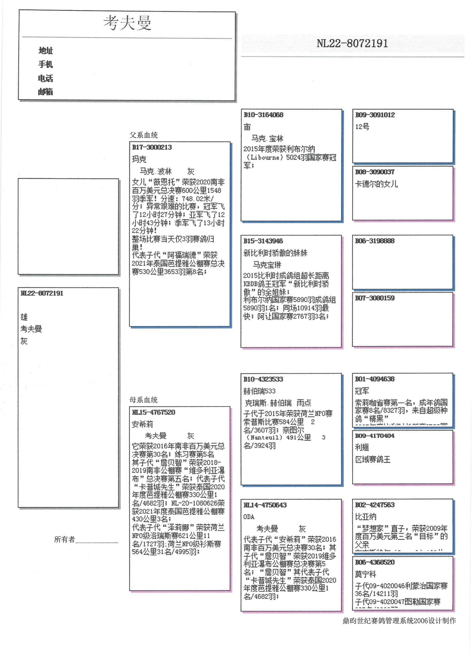 莱邦纳国家赛 5,024羽1名 – 布瑞福国家赛 5,286羽7名 – 苏亚克国家赛 7,760羽18名 – 卡奥尔国家赛 6,576羽42名 – 图勒国家赛 5,976羽81名 – 利蒙治国家赛 14,271羽101名 等等