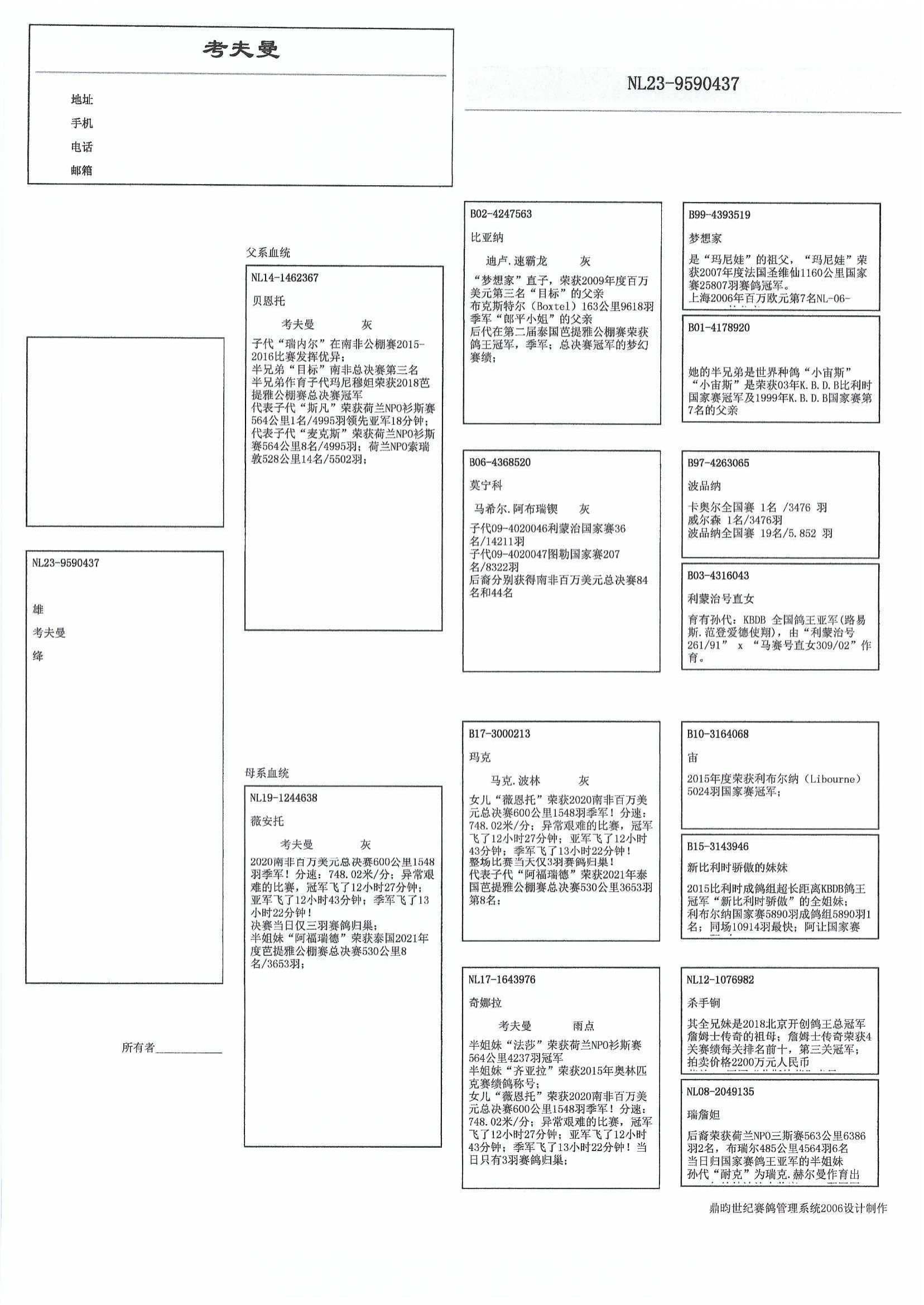 “马克” (贝洛尼国家赛1名“宙” x “新比利时骄傲之姐妹”直子) x “奇娜拉” (“杀手锏” x “瑞詹妲”直女) 直女