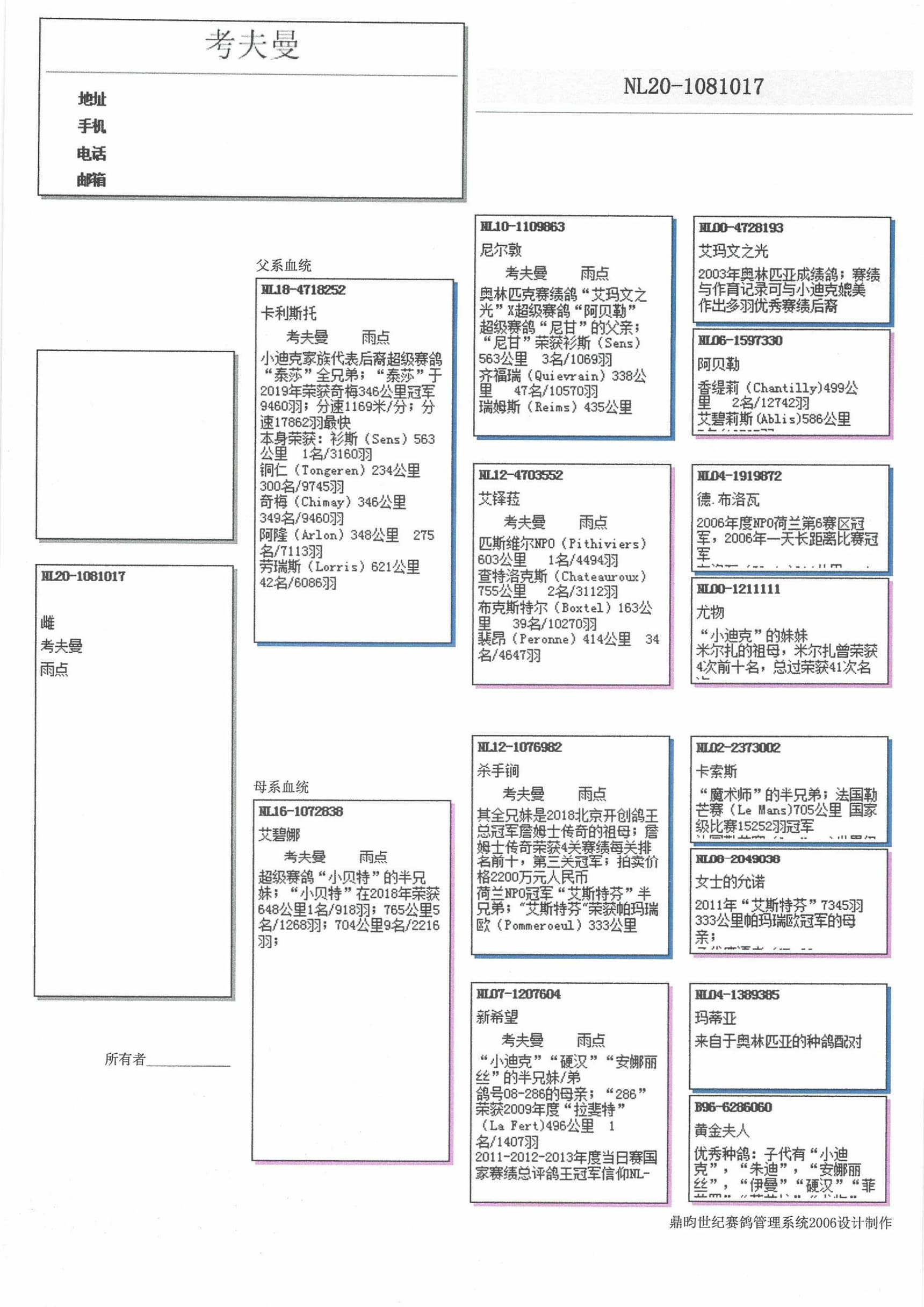 带DNA检验证书直女”卡利斯托”(衫斯赛1名/3160羽)X”艾碧娜”(半兄妹”小贝特”;”艾娃”和”信仰”)