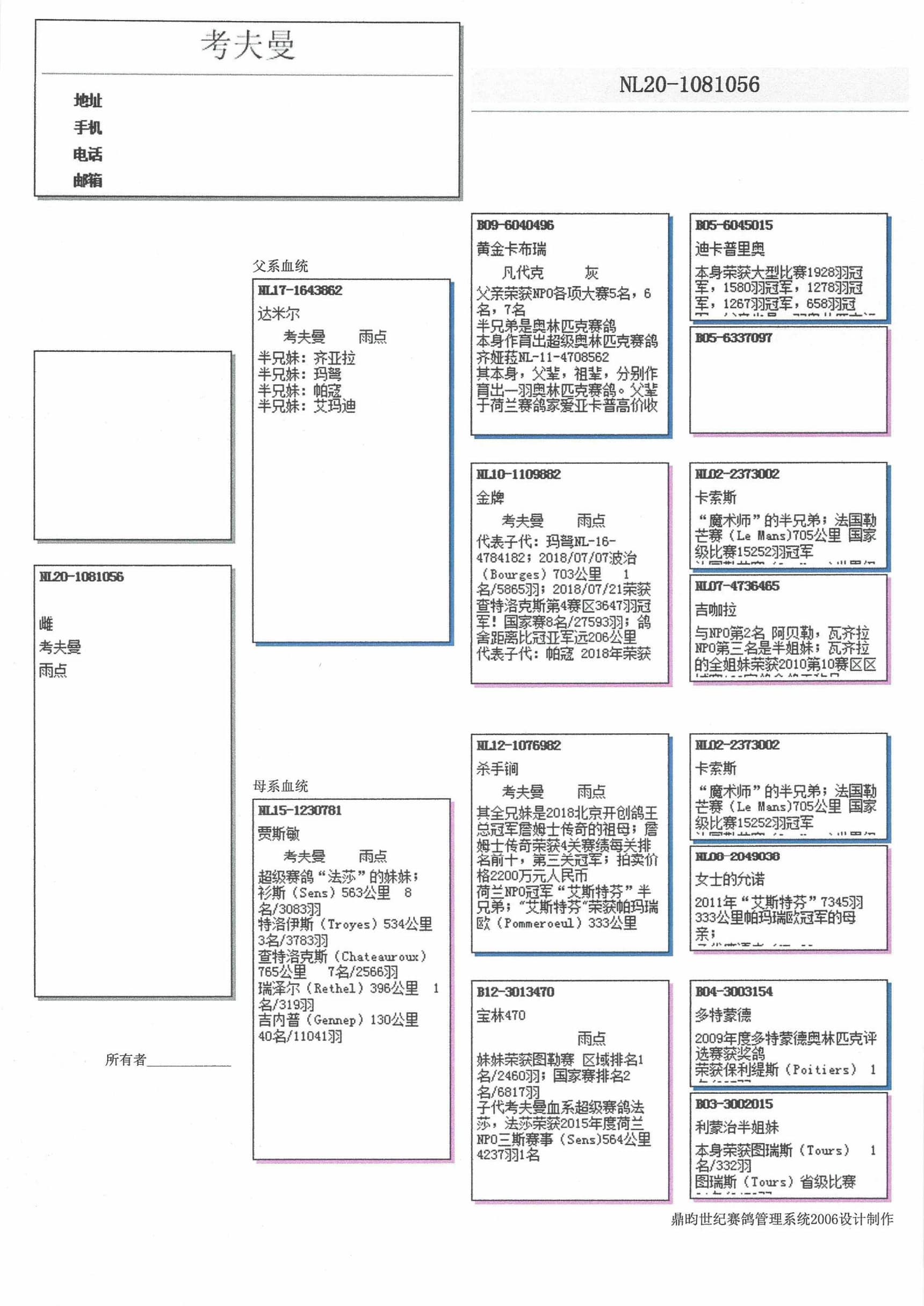 带DNA检验证书“黄金卡布瑞”X“金牌”的孙代鸽“杀手锏”X“宝琳470”的孙代鸽