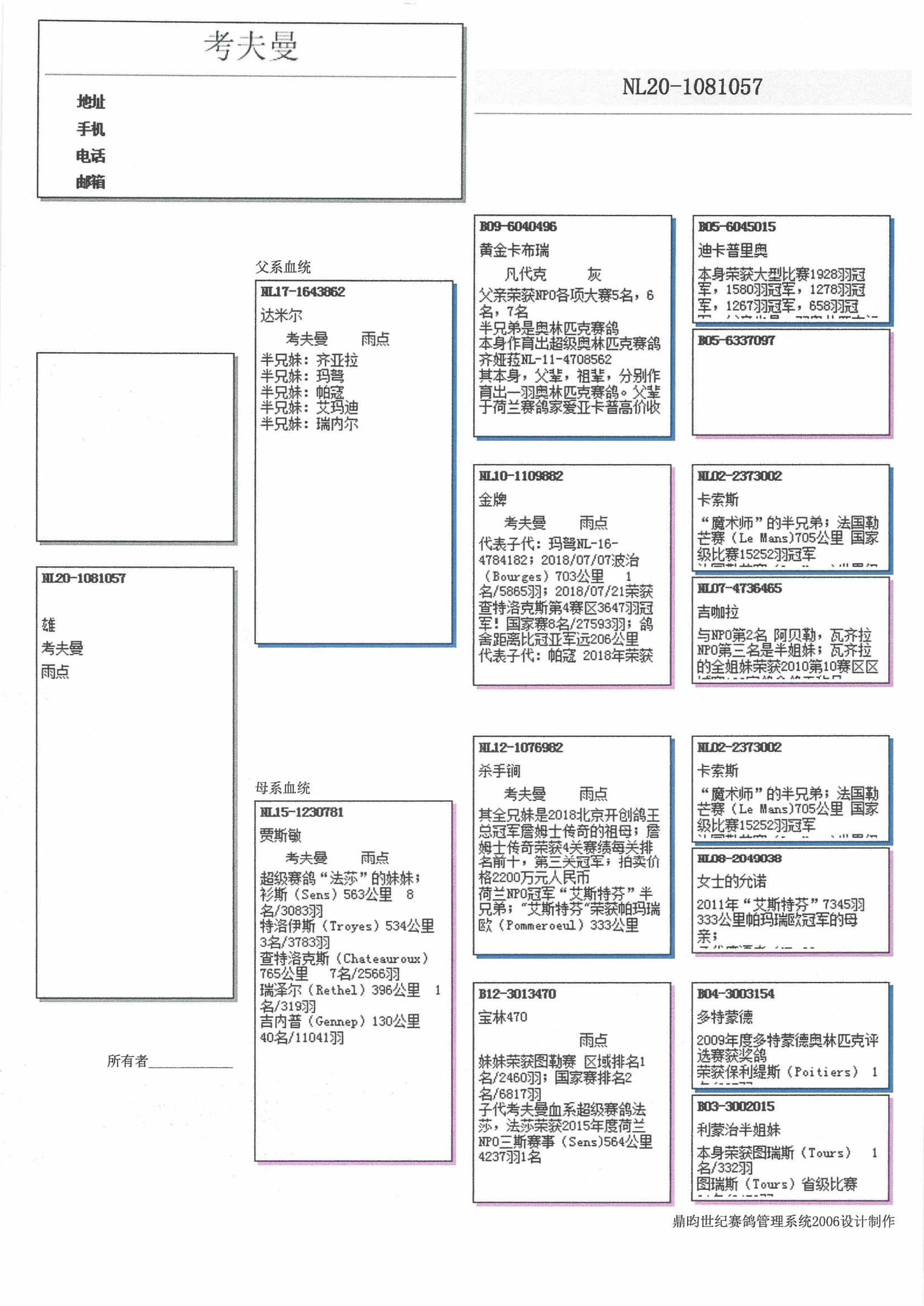 带DNA检验证书“黄金卡布瑞”X“金牌”的孙代鸽“杀手锏”X“宝琳470”的孙代鸽