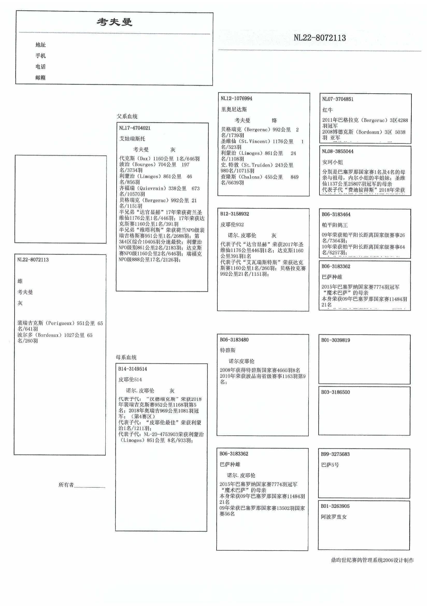 出自: “塔贝斯” (8名 全国塔贝斯 4,660羽 – 9名 省级 波品纳 1,163羽) x “巴塞罗那 雌” (赢得 21名 全国巴塞罗那 11,484羽 – 56名全国巴塞罗那13,502羽)