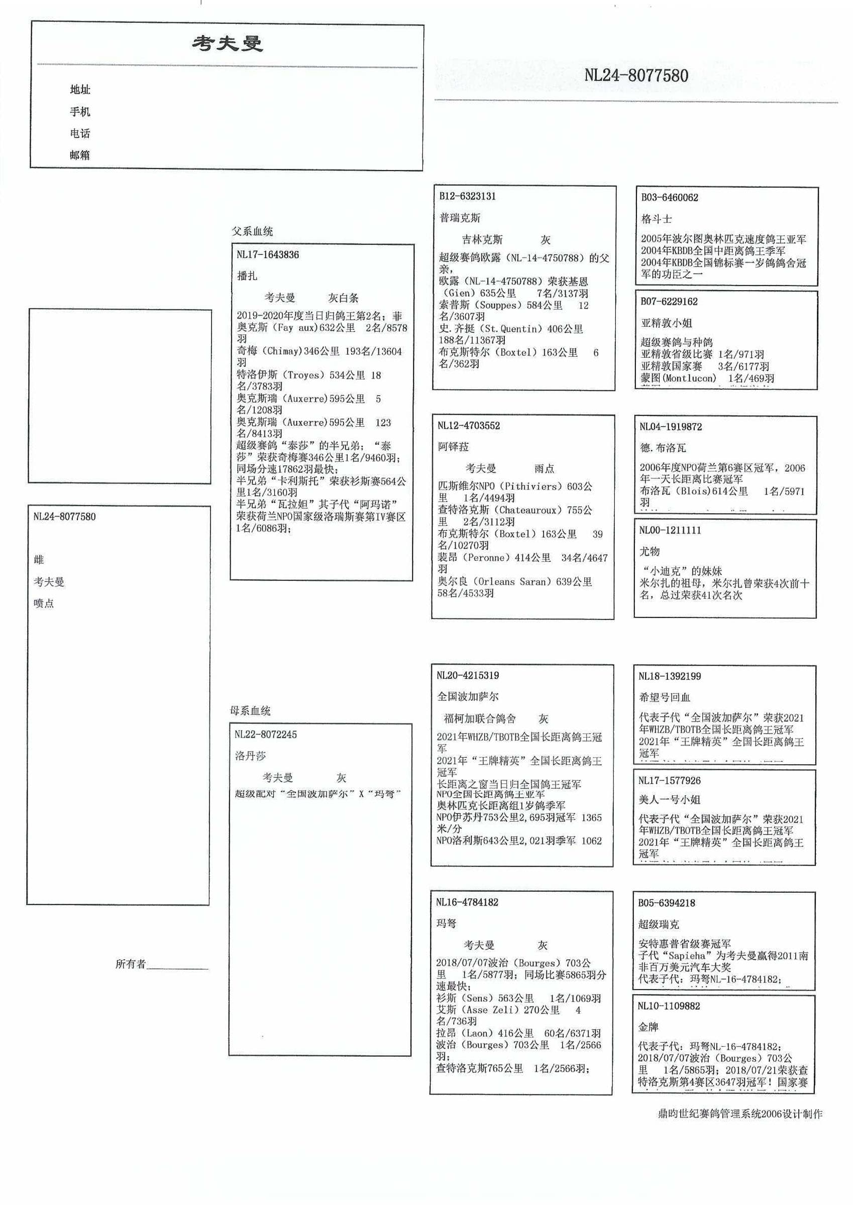 奥林匹克鸽当日归– 1名 全国鸽王 “全能赛绩鸽”