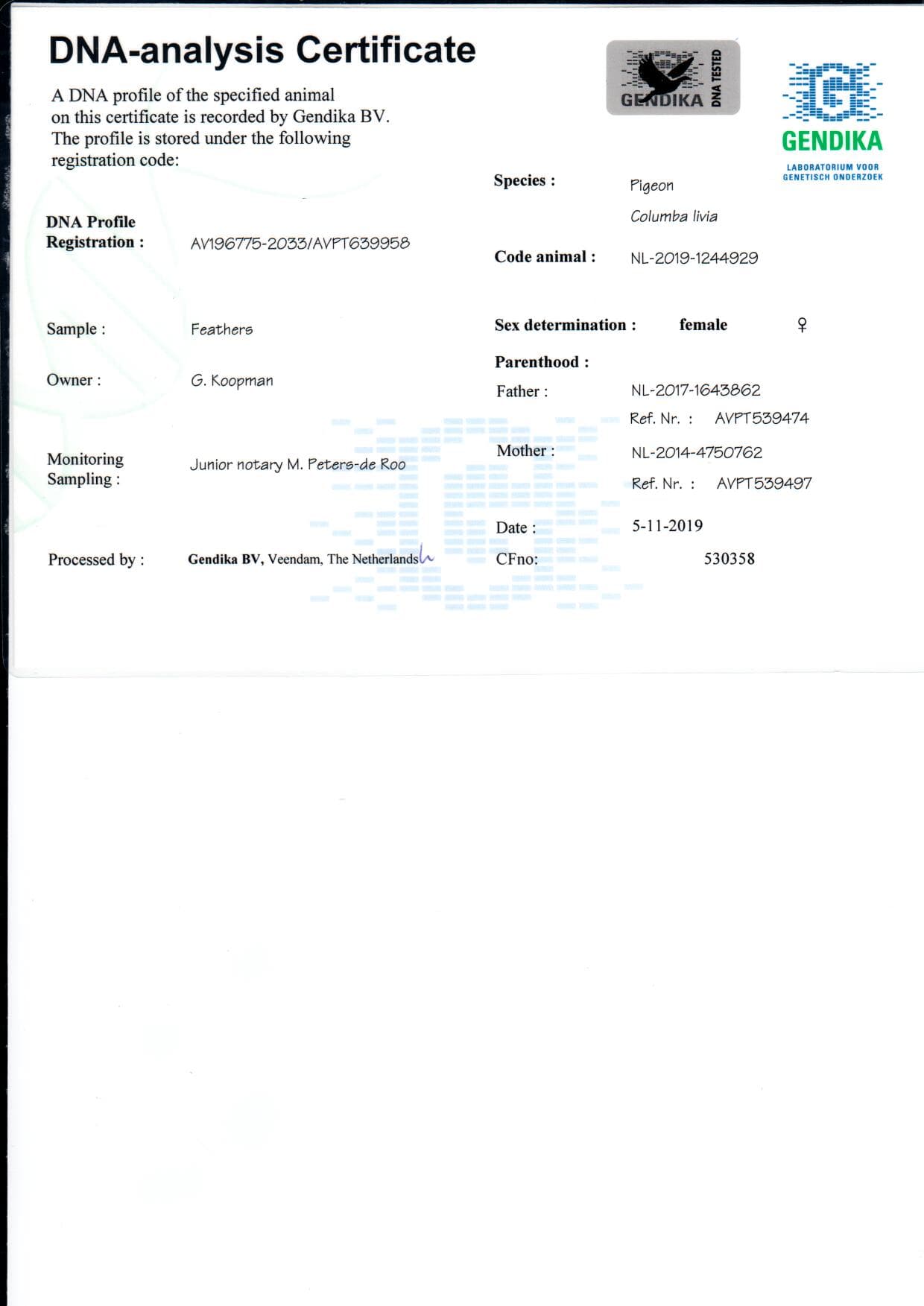 DNA 验证18年维多利亚公棚赛热点赛第五场 (205公里) 1名之半姐妹实力非凡种鸽 “黄金卡布瑞” x “金牌” 直孙女 “灰劲力” x “金姬娅小姐” 直孙女