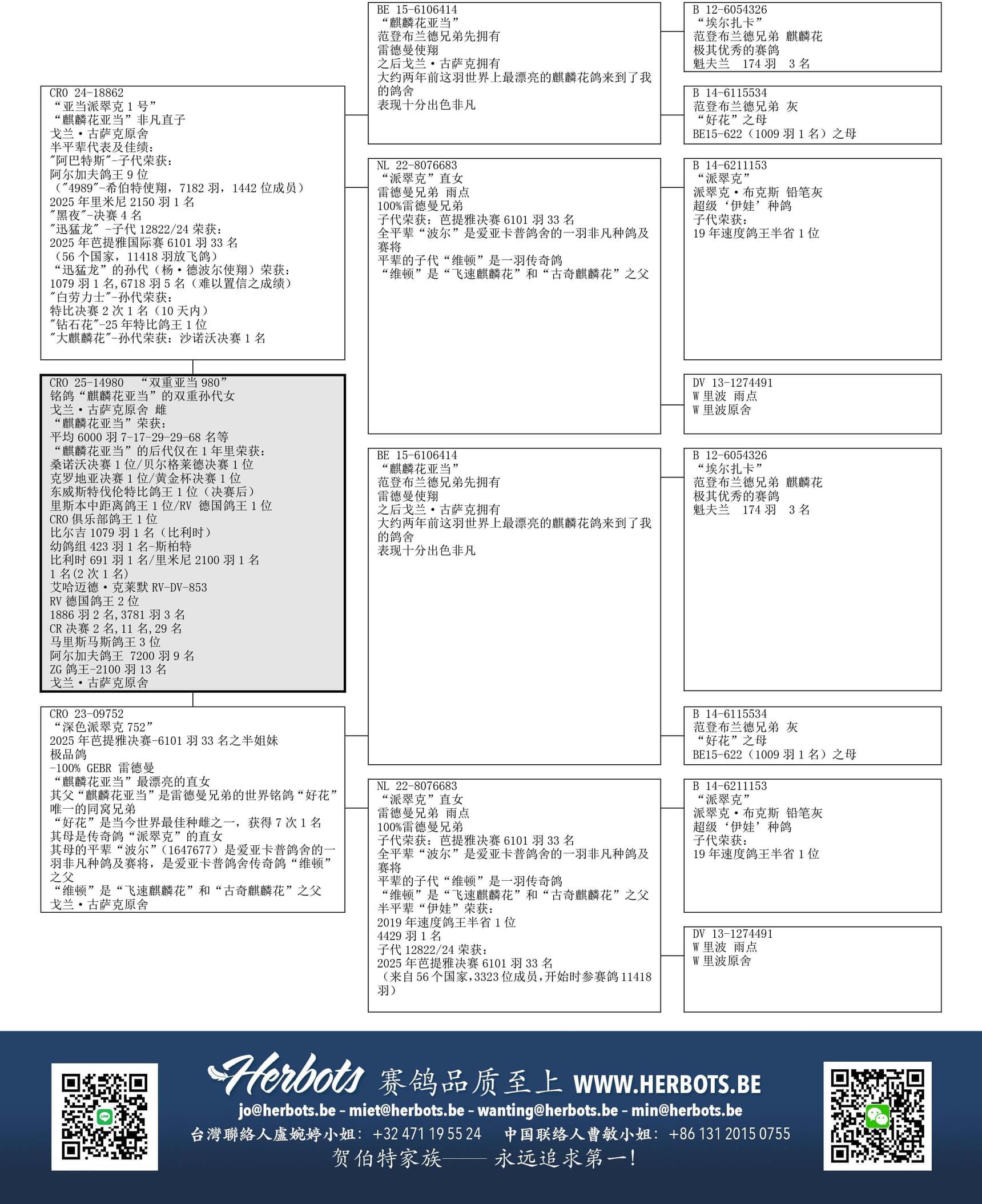 基础种鸽“麒麟花亚当”x “派翠克直女”的双重孙代