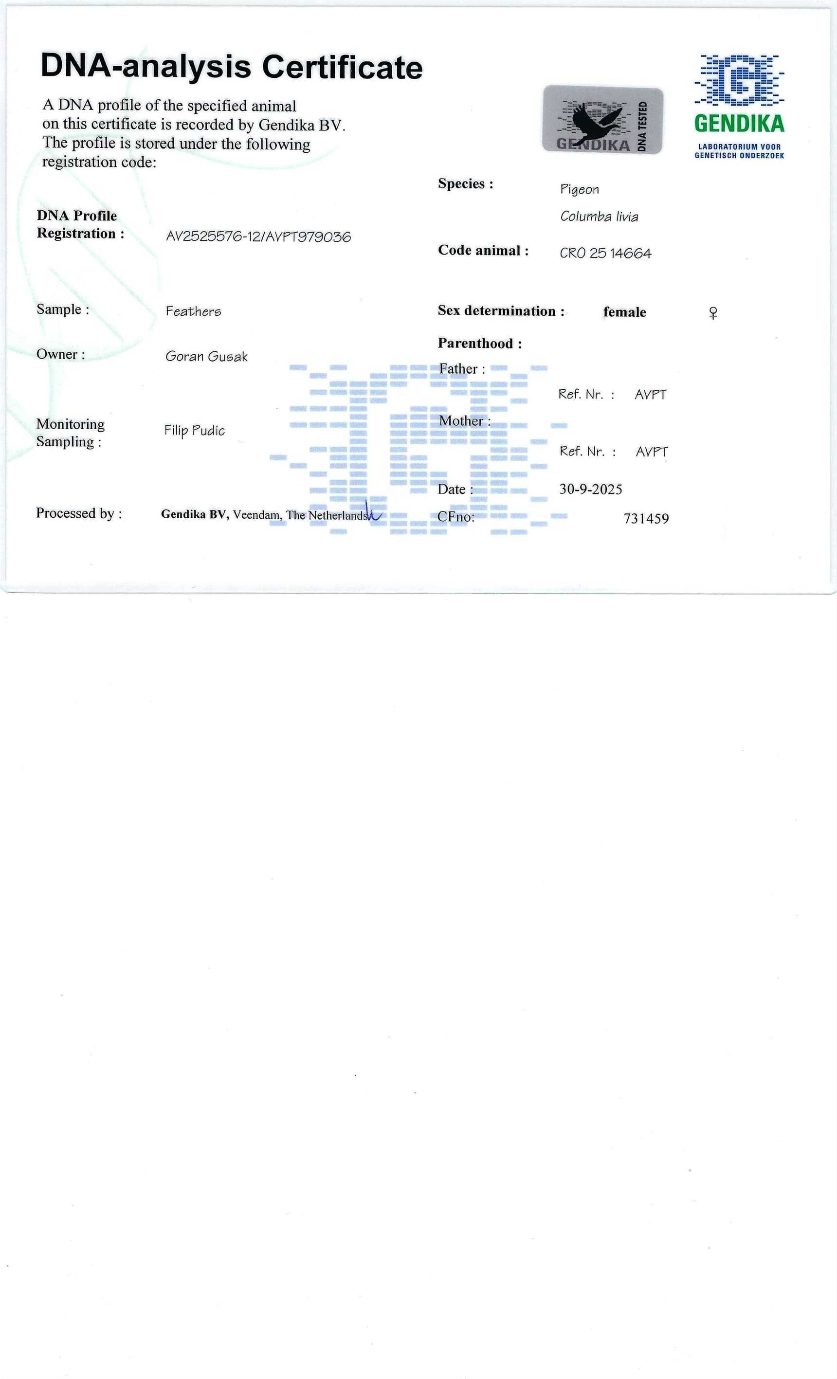 子代“雅玛逊芬尼”荣获: 2025年芭提雅鸽王2位