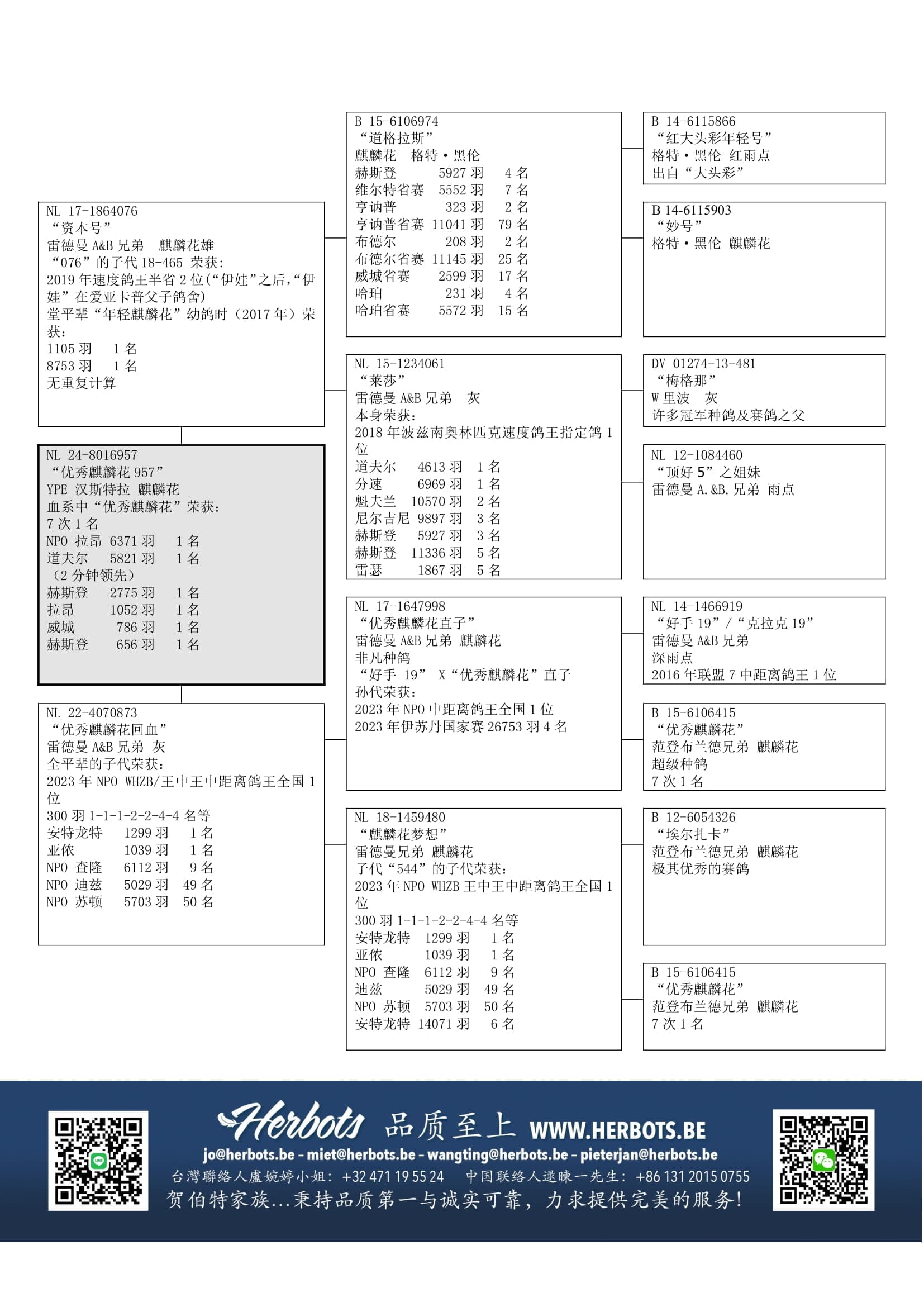 世界铭鸽“优秀麒麟花” (雷德曼兄弟)直女