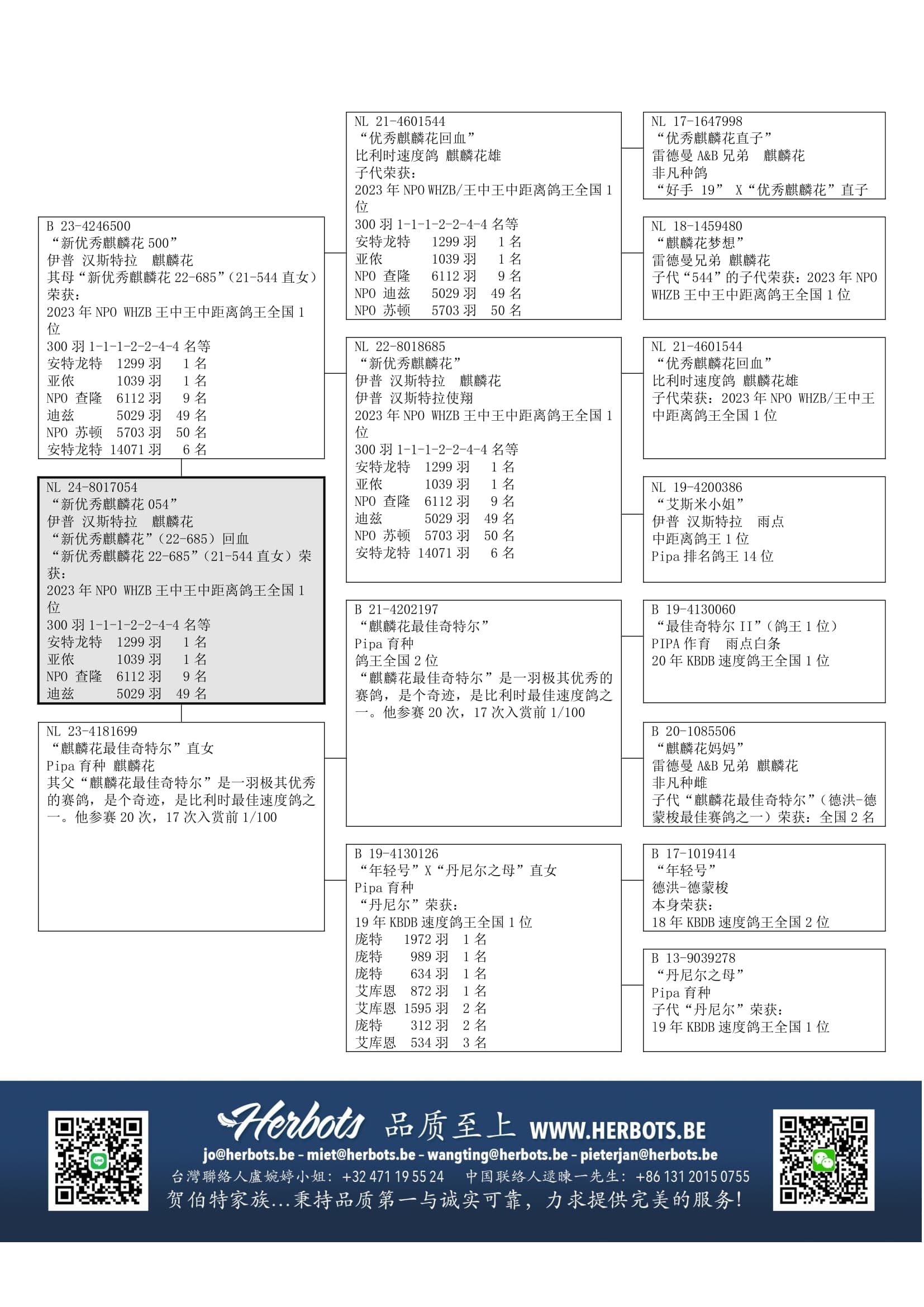 “最佳奇特尔 II” (KBDB短距离鸽王全国1位) x “麒麟花妈妈”(“优秀麒麟花”直女) 作出