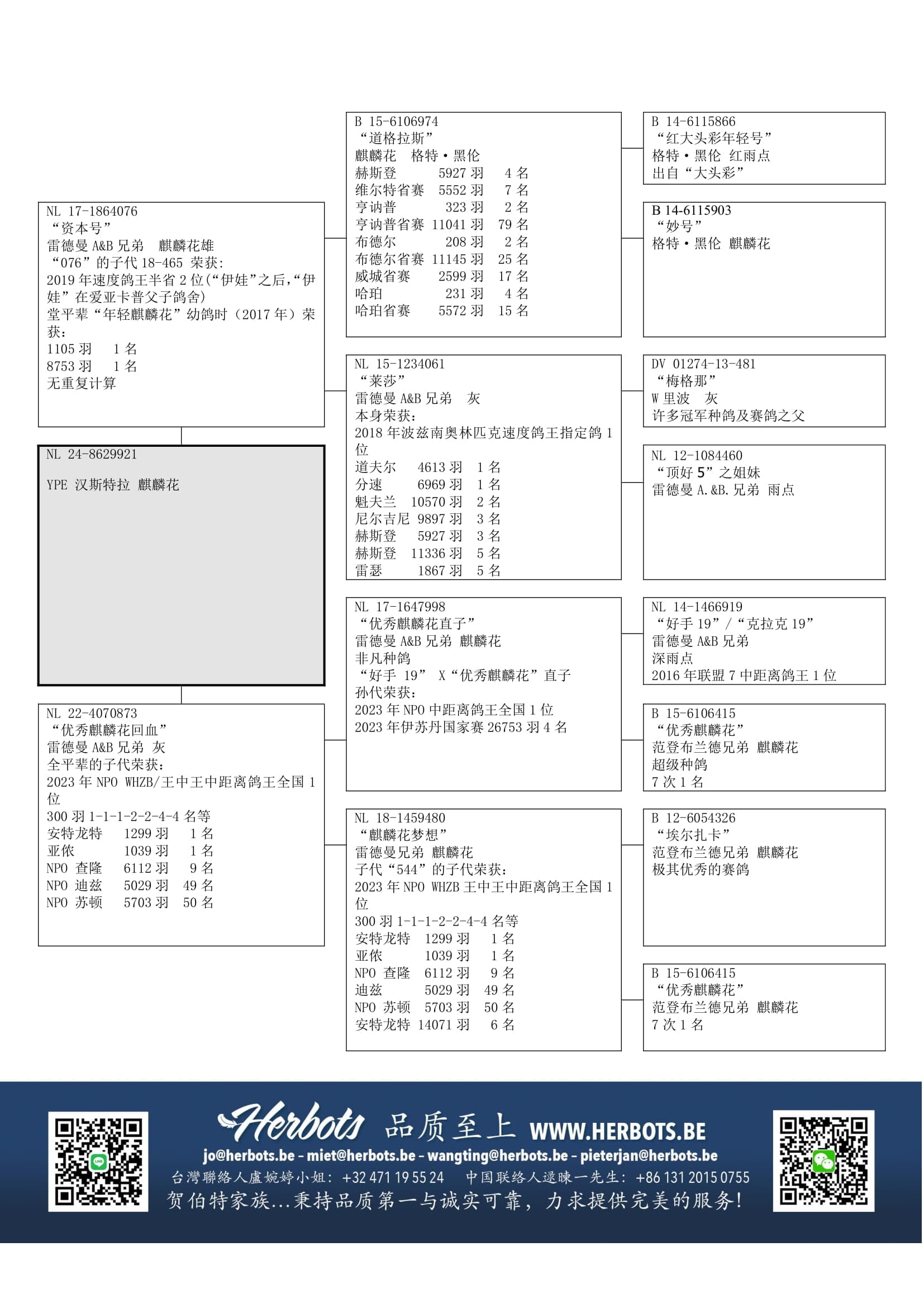 世界铭鸽“优秀麒麟花” (雷德曼兄弟)直女