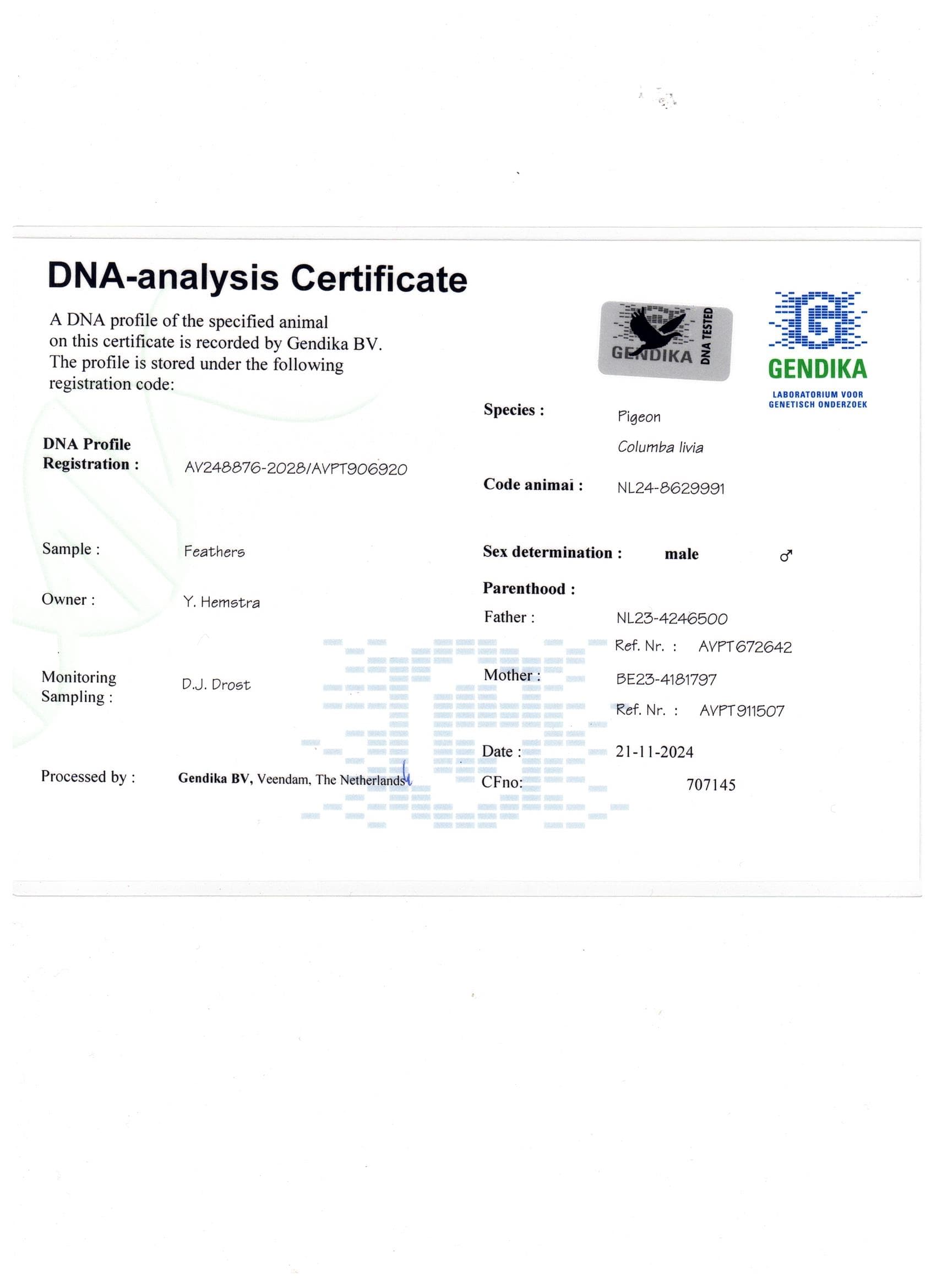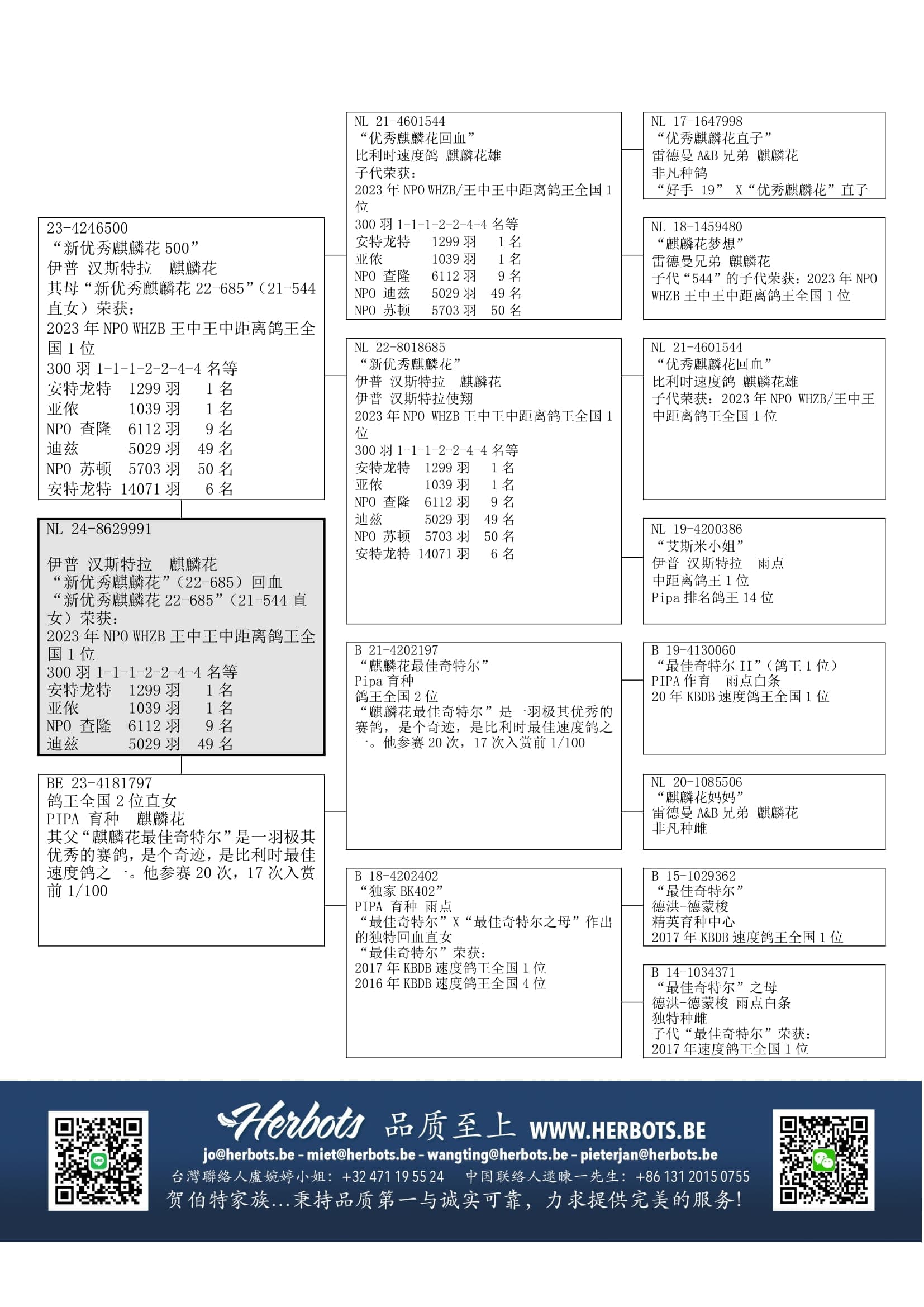 “最佳奇特尔 II” (KBDB短距离鸽王全国1位) x “麒麟花妈妈”(“优秀麒麟花”直女) 作出