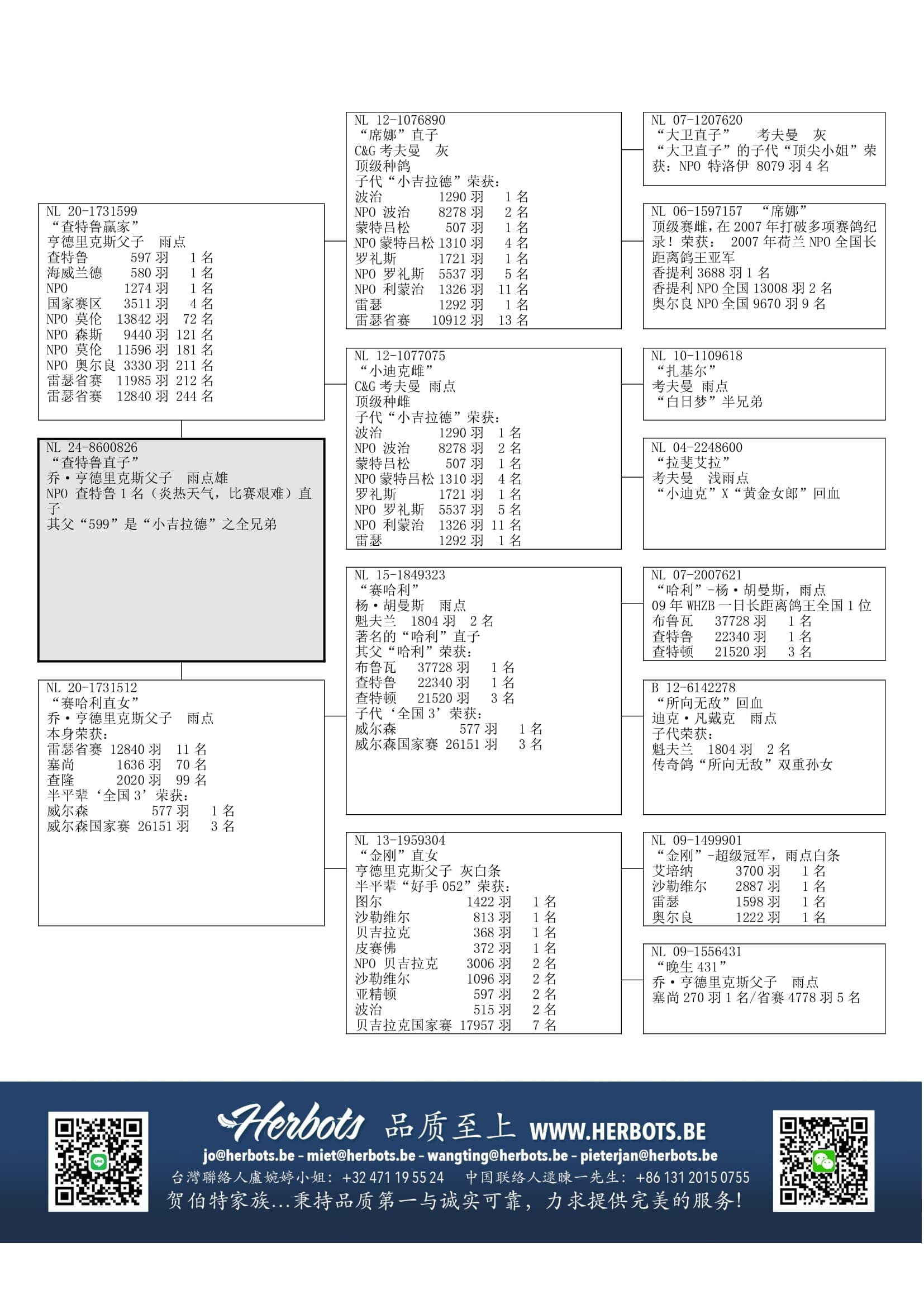 半平辈“好手 052” (4 次1名 – 贝吉拉克国家赛17,957羽7名 - 沙勒维尔 1,096羽2名 – 等等)