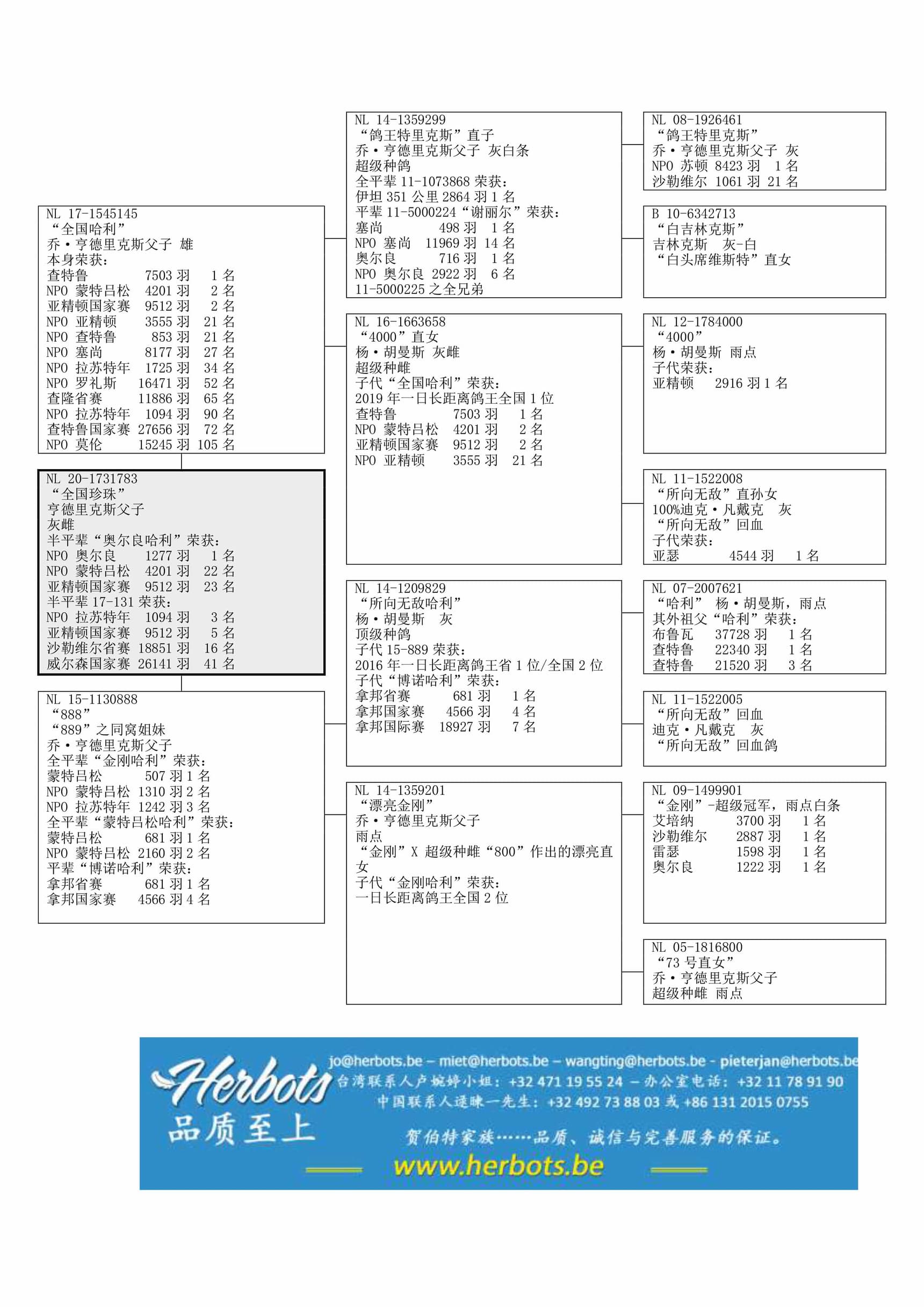半平辈“131-17”荣获:NPO 拉苏特年 1,094羽3名 - 亚精顿国家赛 9,512羽5名 – 沙勒维尔省赛 18,851羽16名 – 威尔森国家赛 26,141羽41名
