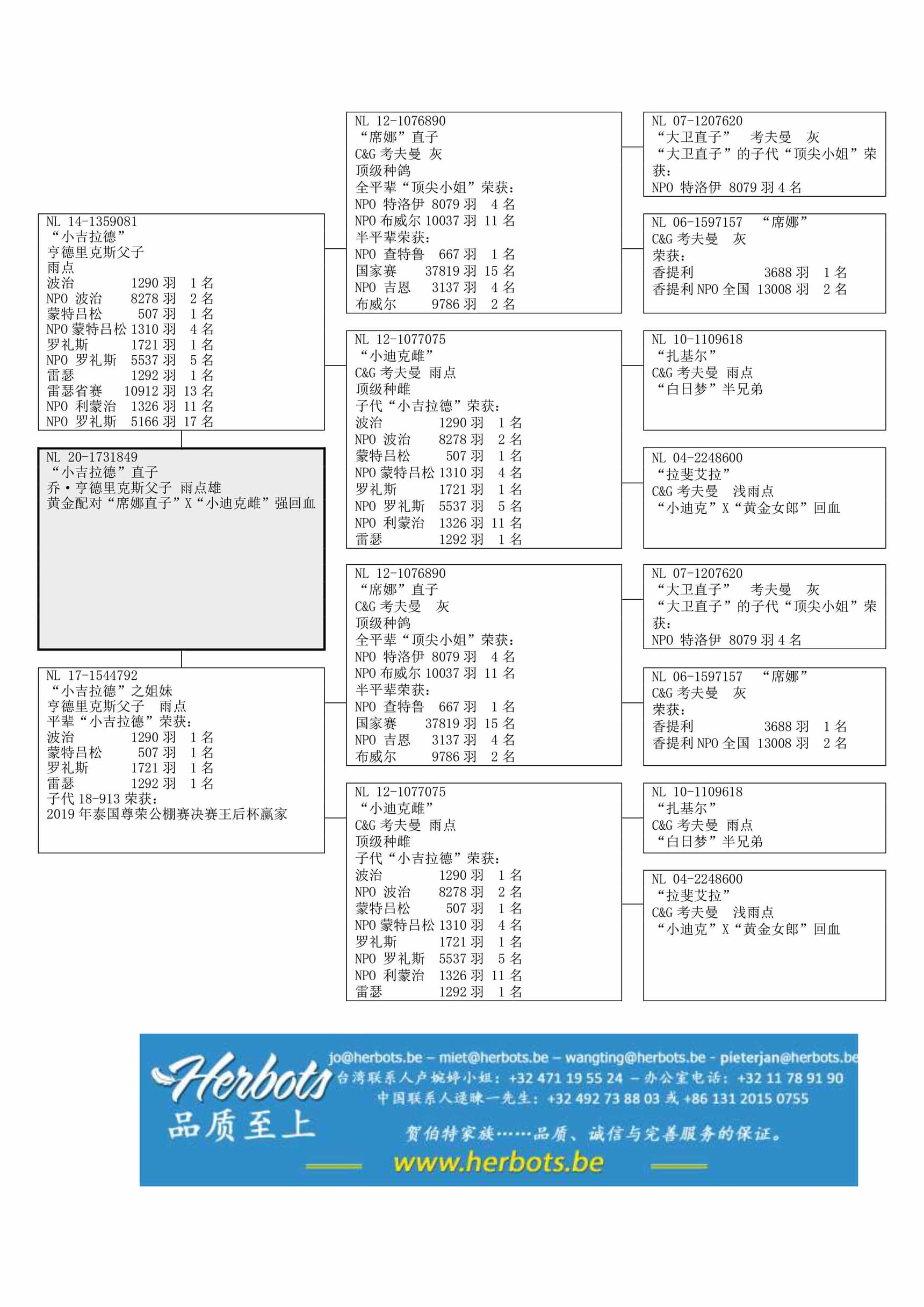 独家配对 !“兄弟 X 姐妹”配对作出其父“小吉拉德”(冠军鸽)荣获: NPO 波治 8,278羽2名– NPO 蒙特吕松 1,310羽4名- NPO 罗礼斯 5,537羽5名– 雷瑟省赛 10,912羽13名– NPO利蒙治1,326羽11名– NPO 罗礼斯 5,166羽17名