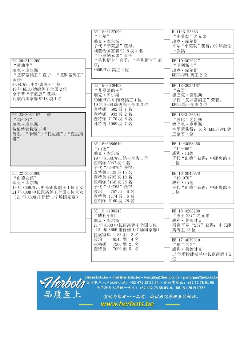 “艾罗蒂鸽王” – “山德” – “威利小姐”之孙