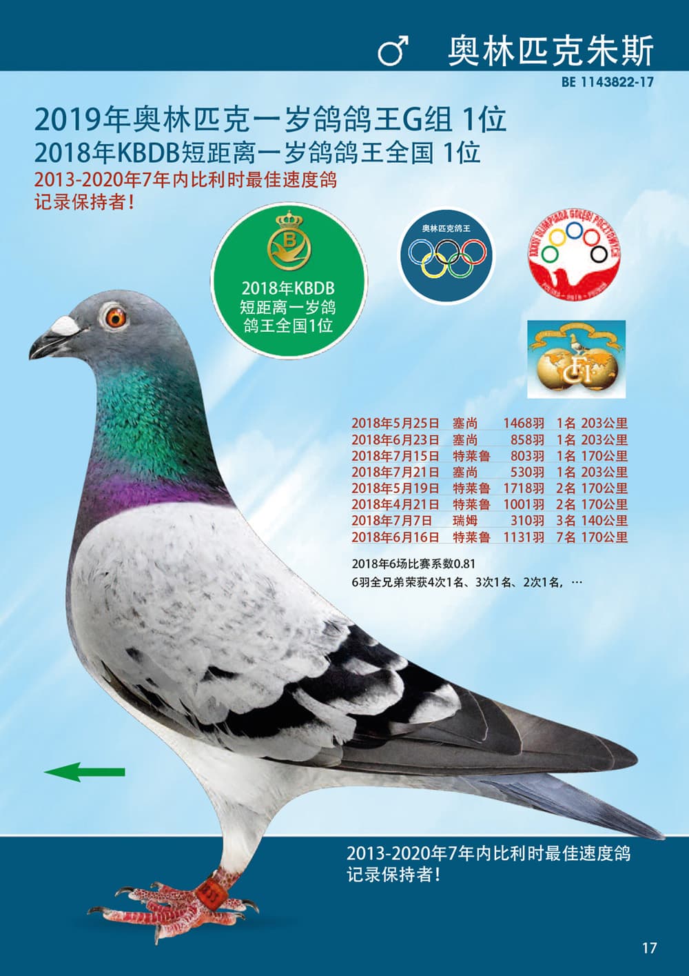 2017年KBDB短距离鸽王全国1位