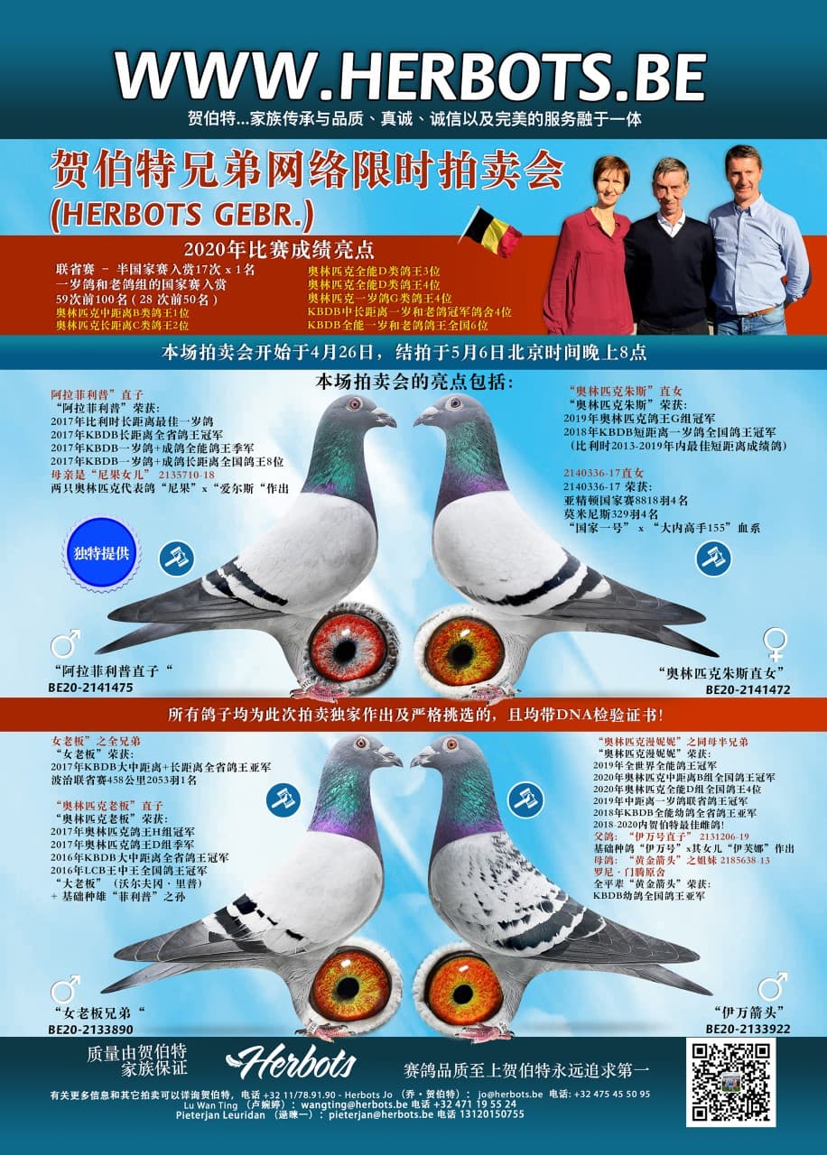 成功的贺伯特种鸽舍大门再次打开。 在这次拍卖中,我们提供了一组精选的2020年鸽