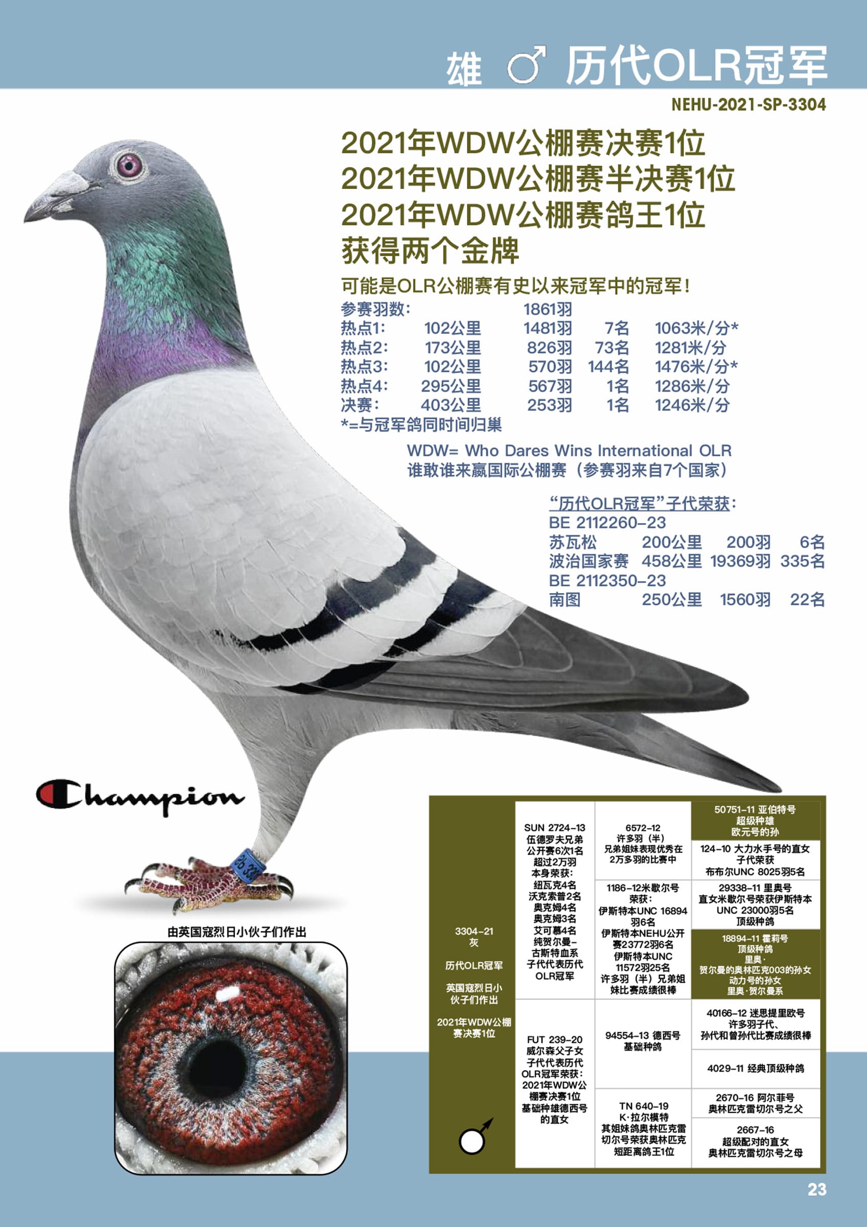 “历代OLR冠军”的子代BE2112350-23荣获: