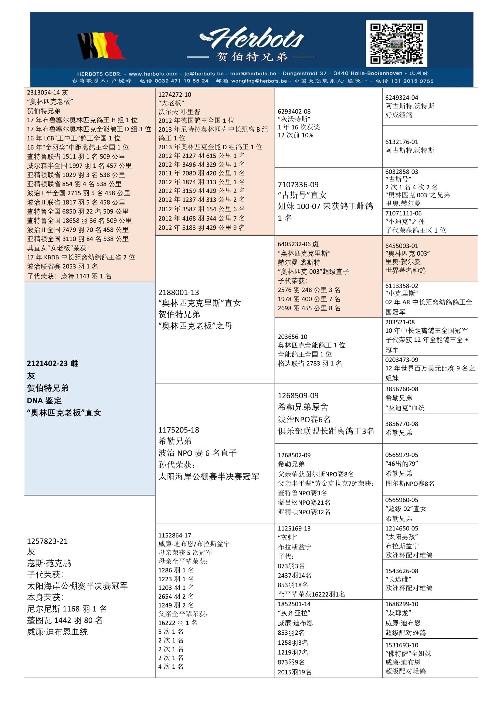 2017年布鲁塞尔奥林匹克H类鸽王1位