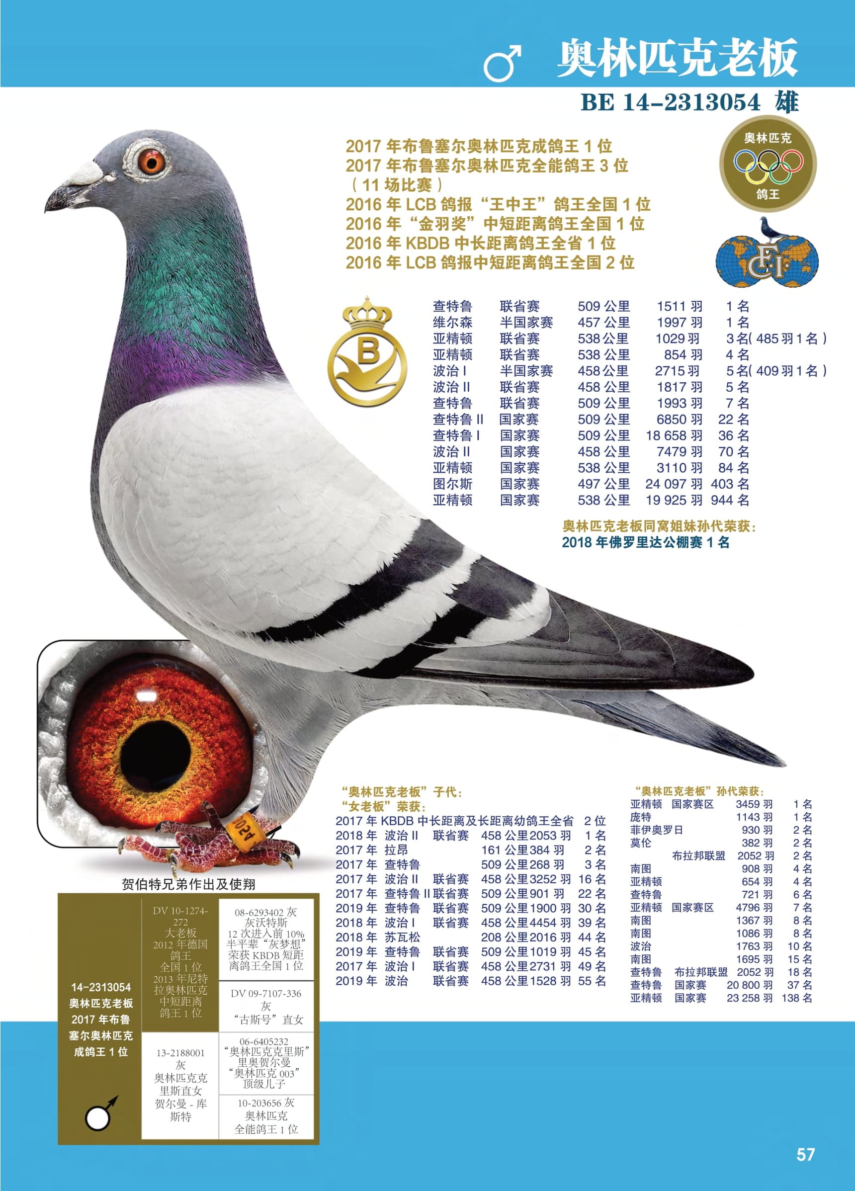 2019年奥林匹克一岁鸽(G类)鸽王1位