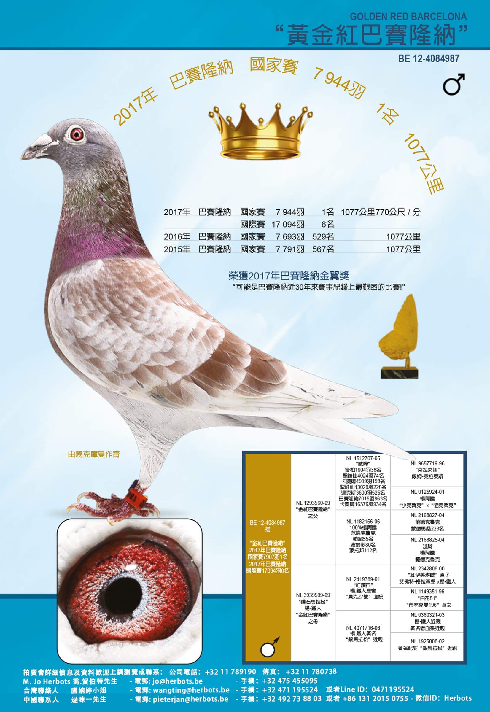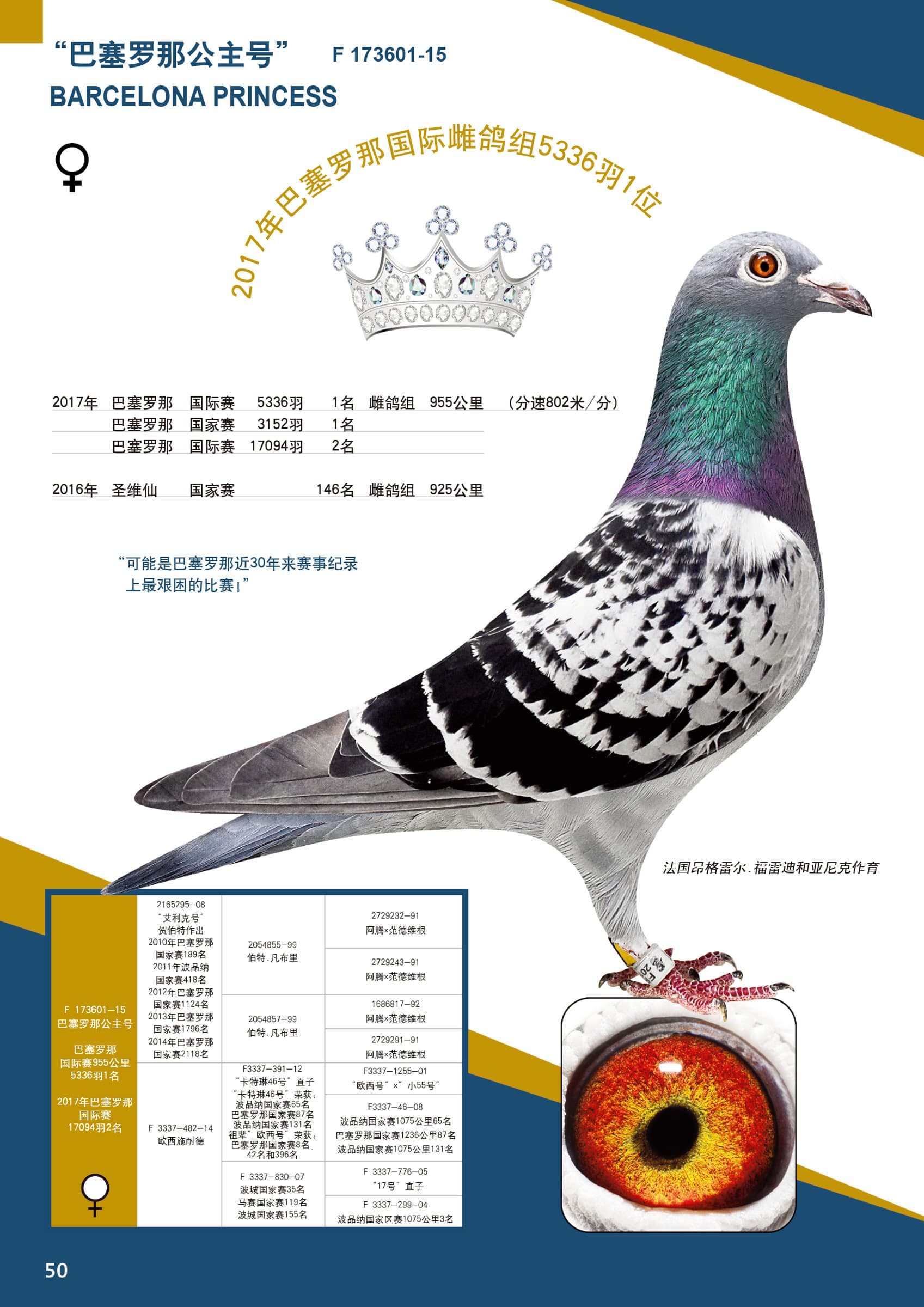 17年巴塞罗那国际赛雌组955公里5366羽1名