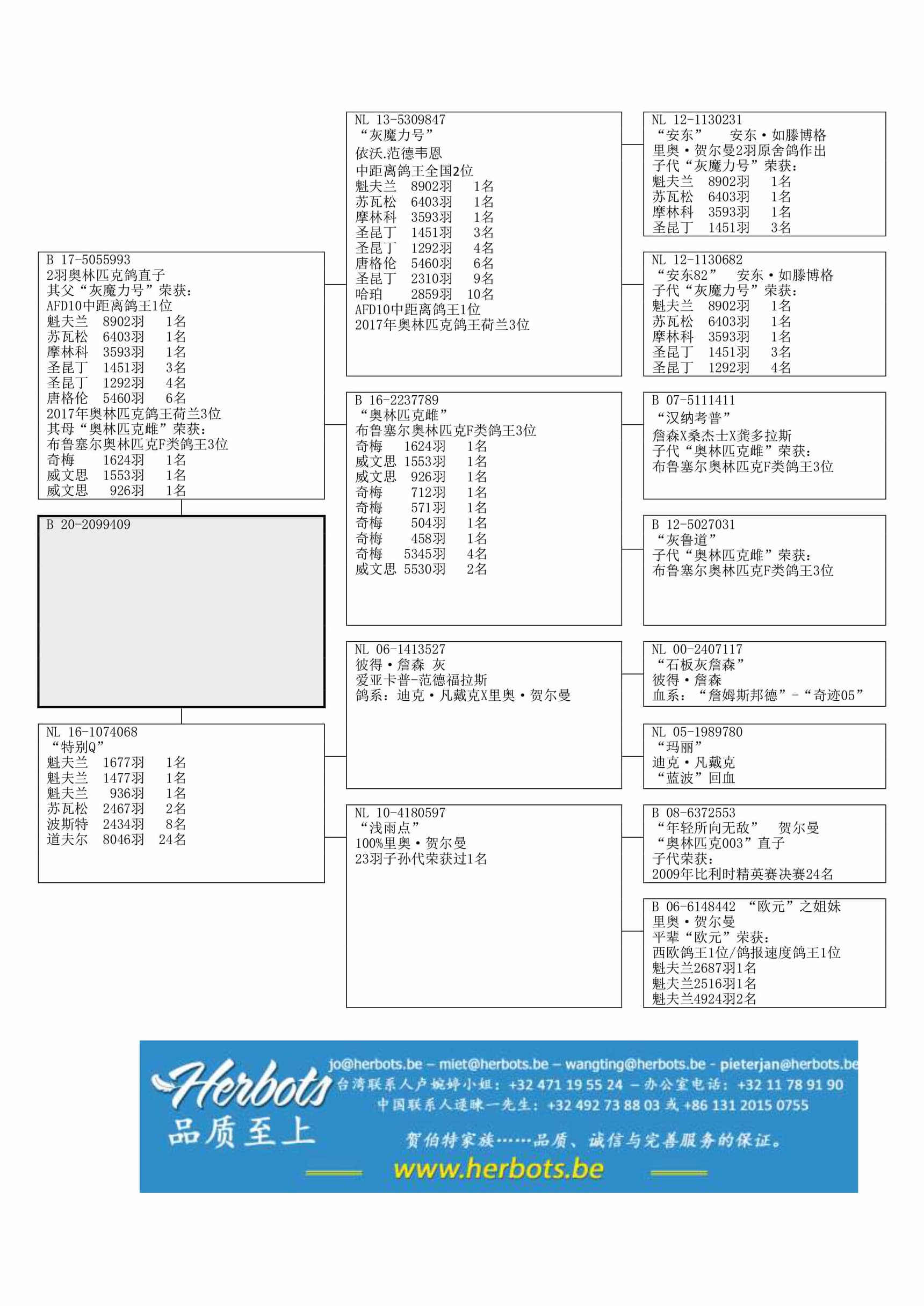 EXCEPTIONAL GENES : DRD CC CT荣获:拉昂 1,545羽 1名 170公里莫米尼斯 106羽 10名 107公里威文思 248羽 12名 135公里梅特 422羽 21名 62公里其母“特别Q”荣获:3 次1名其祖辈“灰魔力号”荣获:荷兰中距离鸽王全国2位– 17年荷兰奥林匹克鸽王3位