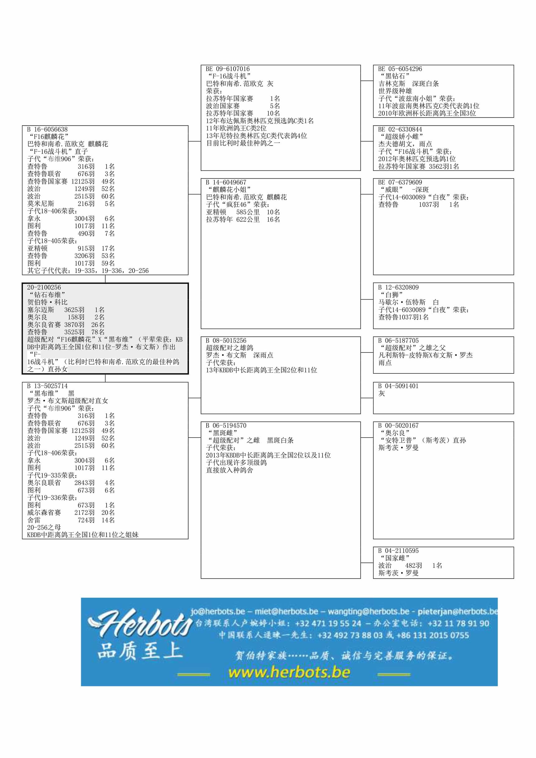 “布文斯超级配对”(子代荣获:KBDB鸽王全国2位和11位)直孙女
