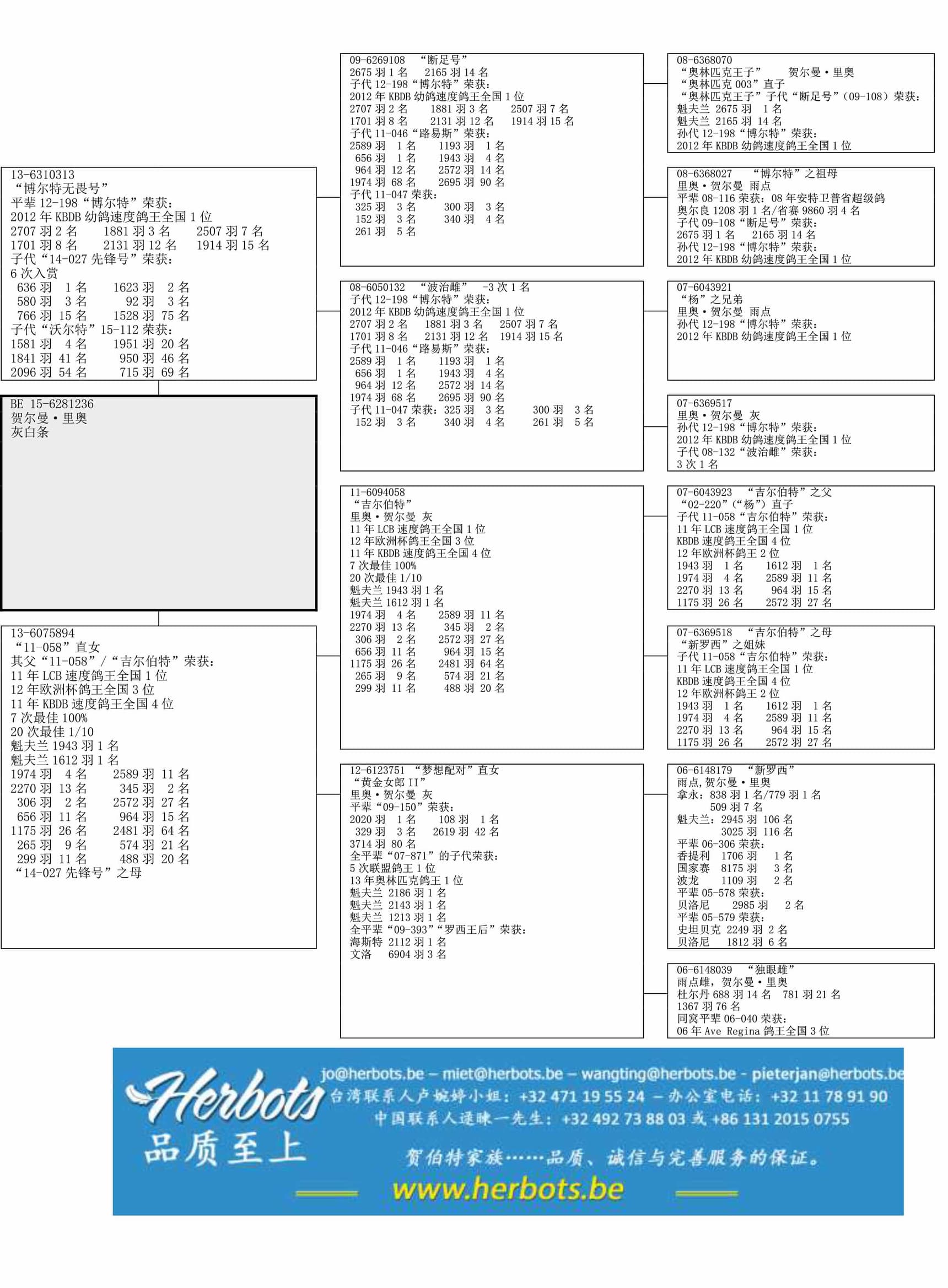 KBDB短距离鸽王全国4位 – 西欧国家杯欧洲鸽王全国3位 - 1,943羽1名 – 1,612羽1名) x “梦想配对直女” (“新罗西” x “独眼雌”直女) 直女
