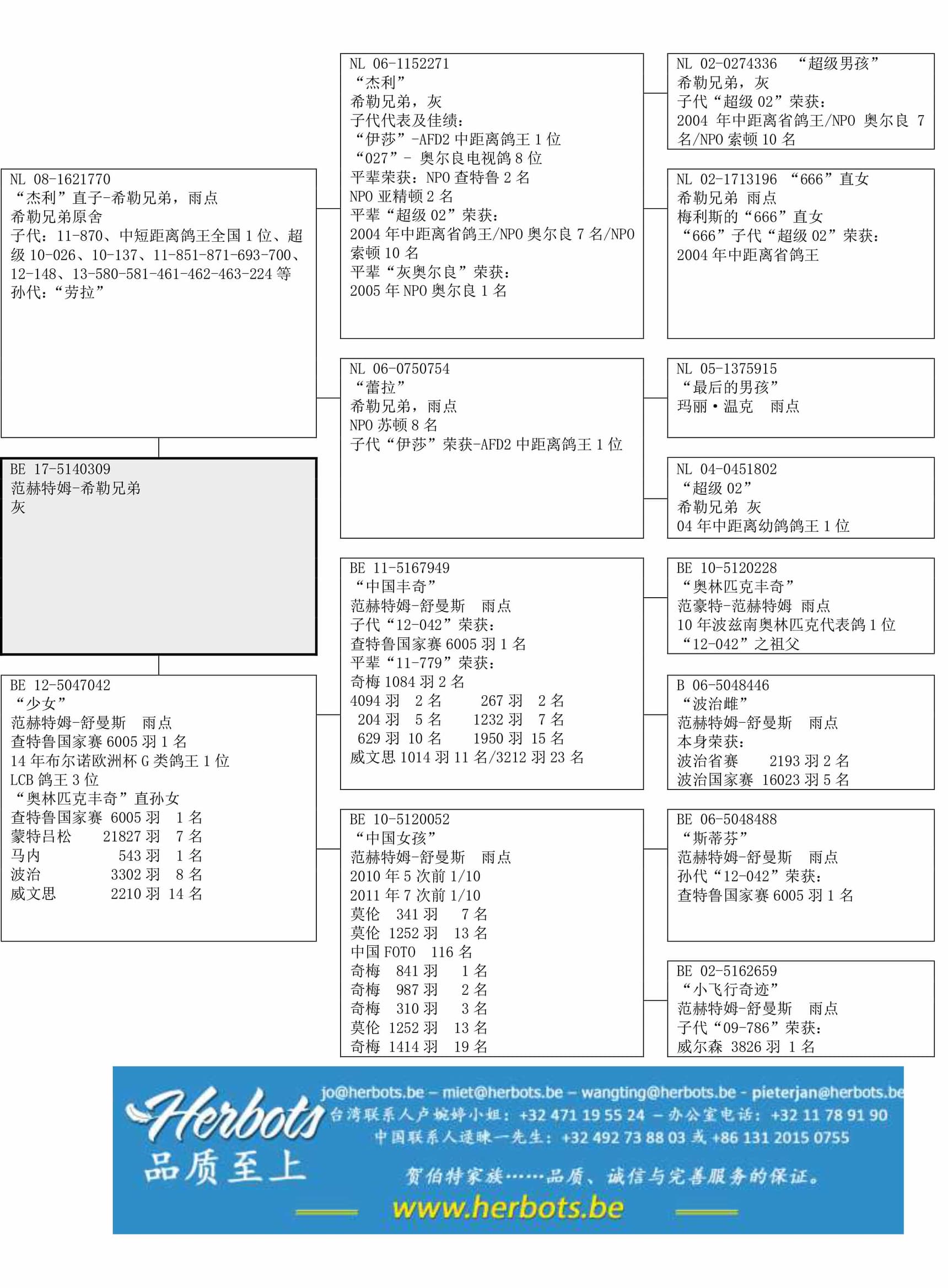 “杰尔森”之半姐妹:中距离鸽王全国1位2014年布尔诺欧洲杯鸽王1位1,171羽 1名800羽 1名605羽 1名314羽 1名285羽 1名“少女”直女:查特鲁国家赛6,005羽1名 蒙特吕松 21,827羽7名