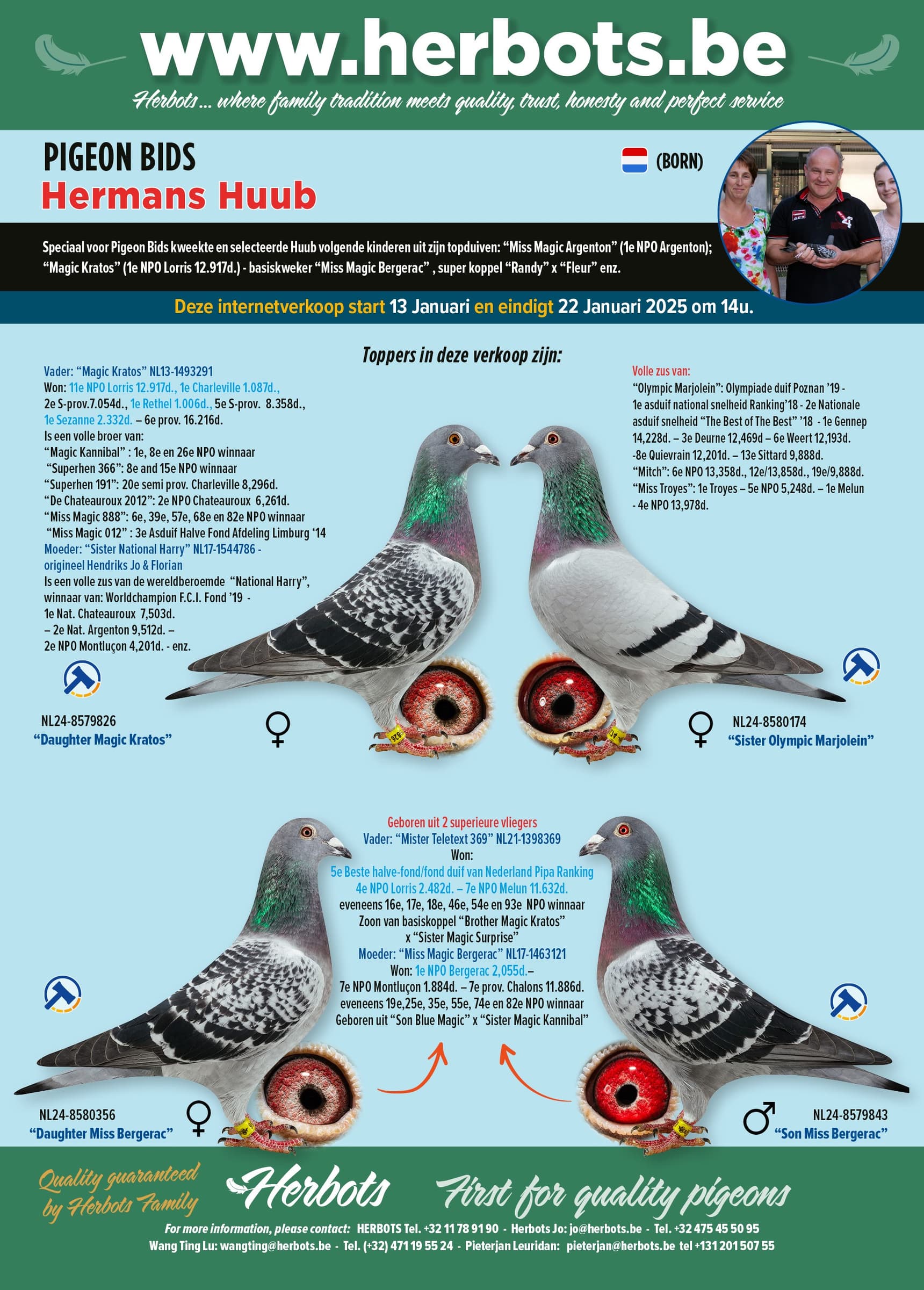 Especially for Pigeon Bids Huub bred and selected a group of 2024-birds, all born from his top lines.