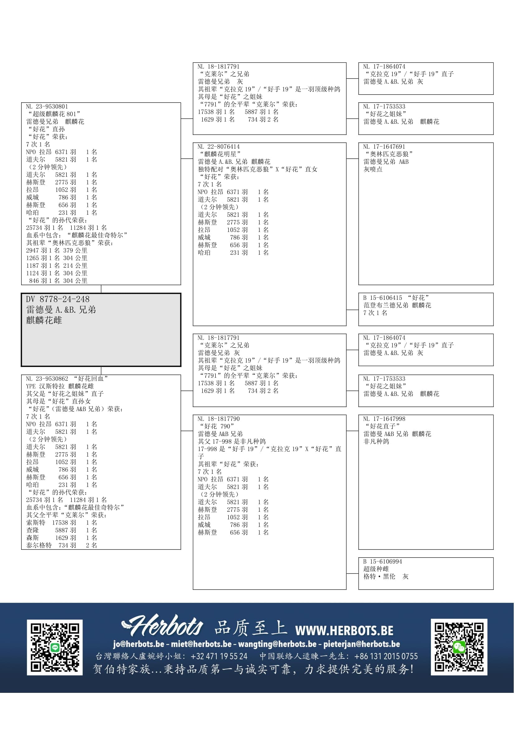 “奥林匹克恶狼” (2,947羽1名 – 1,265羽1名- 1,187羽1名 – 1,124羽1名 – 846羽1名) x 世界铭鸽 “优秀麒麟花” (7 次1名;冠军种鸽)作出