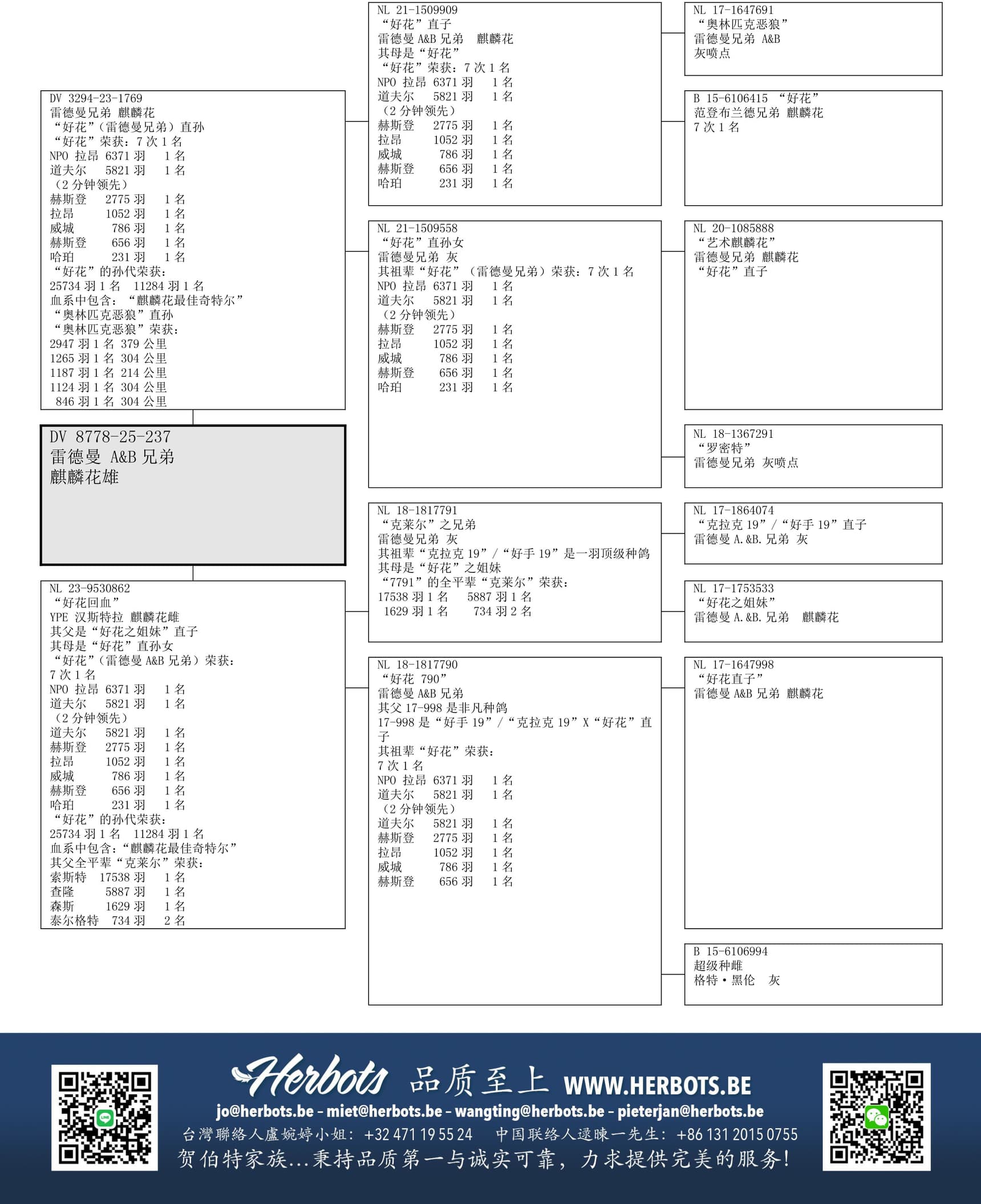 世界铭鸽“好花” (7 次1名;冠军种鸽)作出
