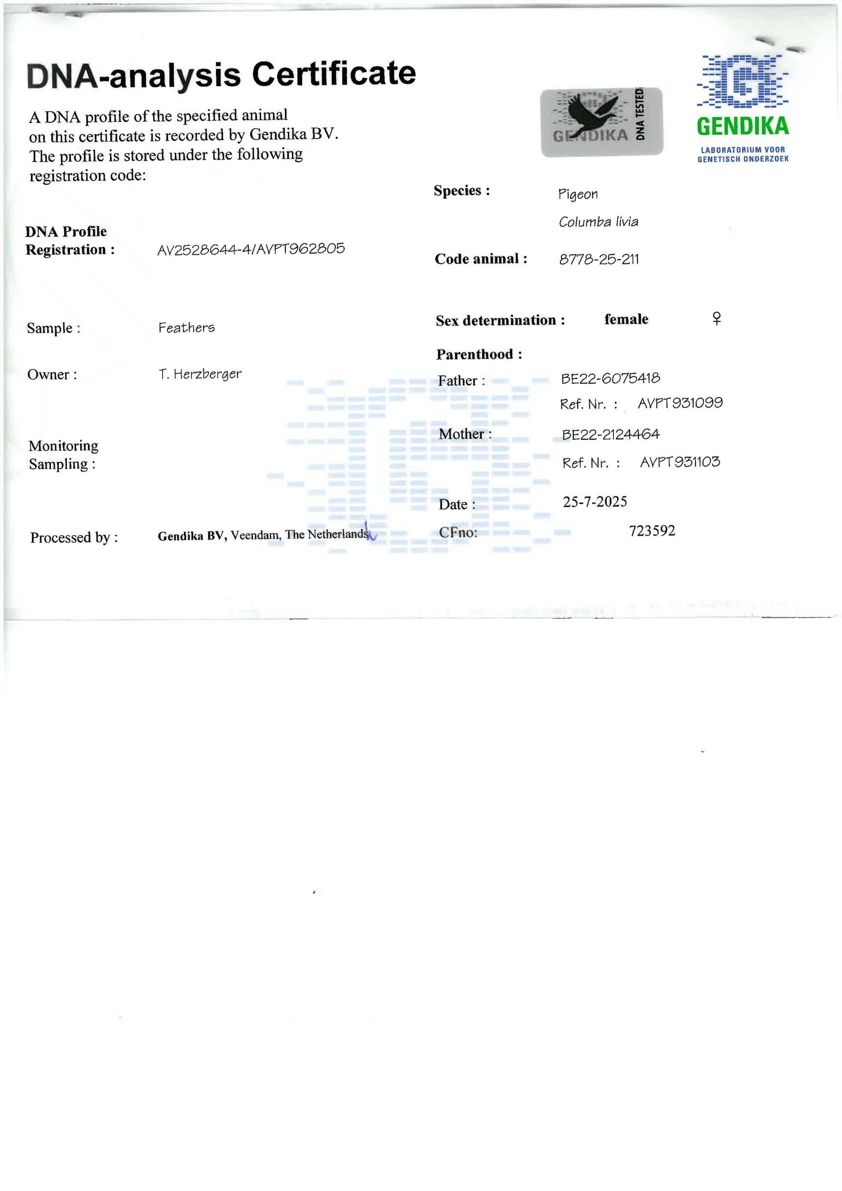 “奥林匹克黎哥”(奥林匹克代表鸽以及 KBDB鸽王全国1位) x “奥林匹克戴安娜” (波兹南奥林匹克D类鸽王以及9 次前10名) 作出