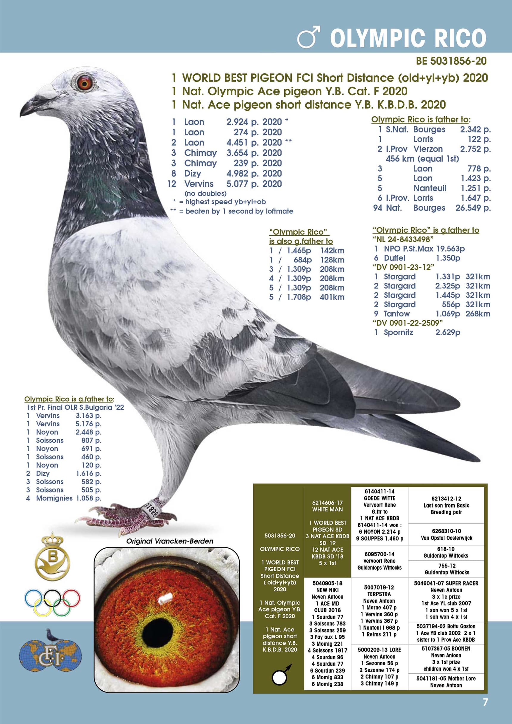 “奥林匹克黎哥”是一羽真正的超级种鸽,其孙代