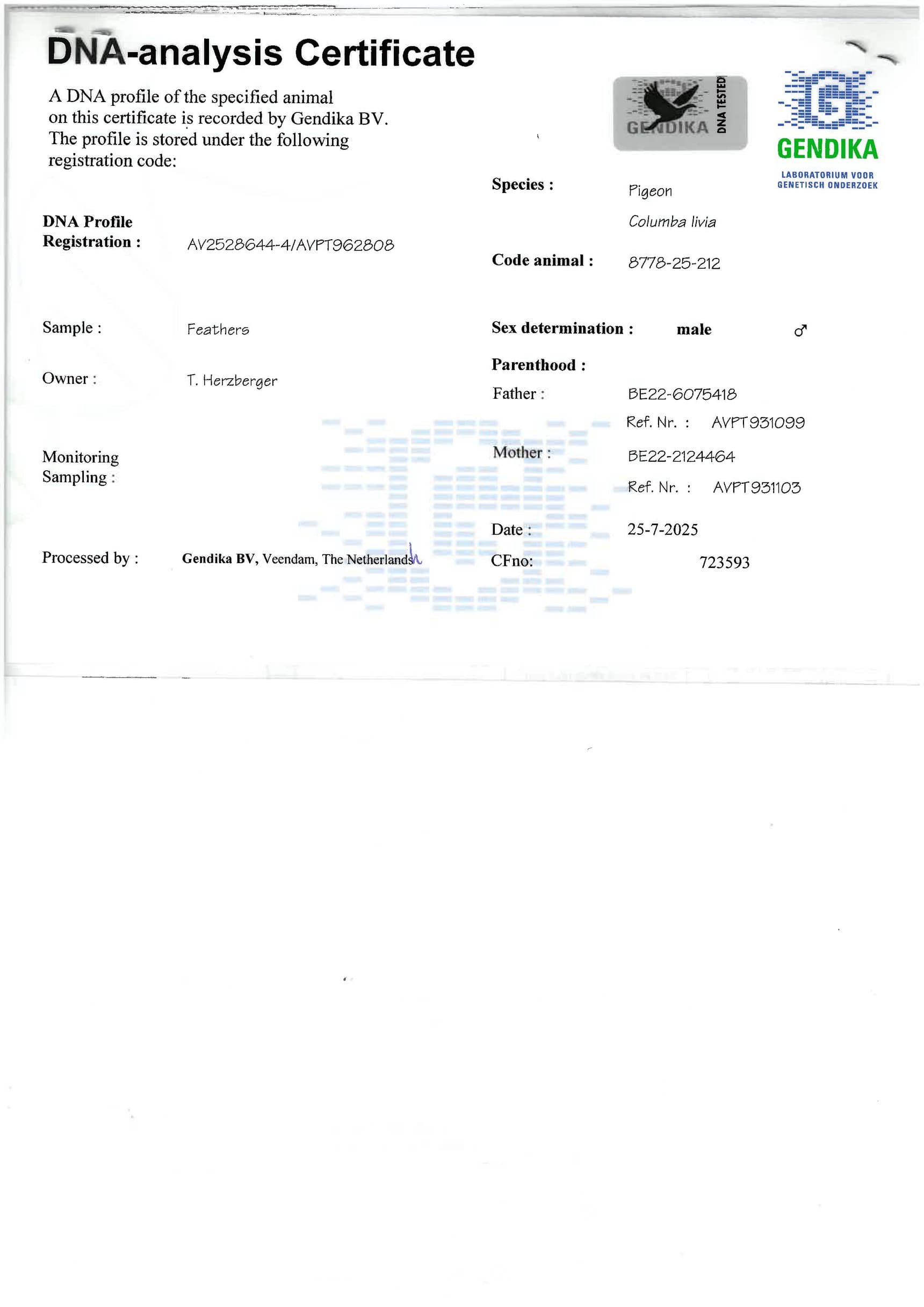 奥林匹克黎哥”(奥林匹克代表鸽以及 KBDB鸽王全国1位) x “奥林匹克戴安娜”  (波兹南奥林匹克D类鸽王以及9 次前10名) 作出