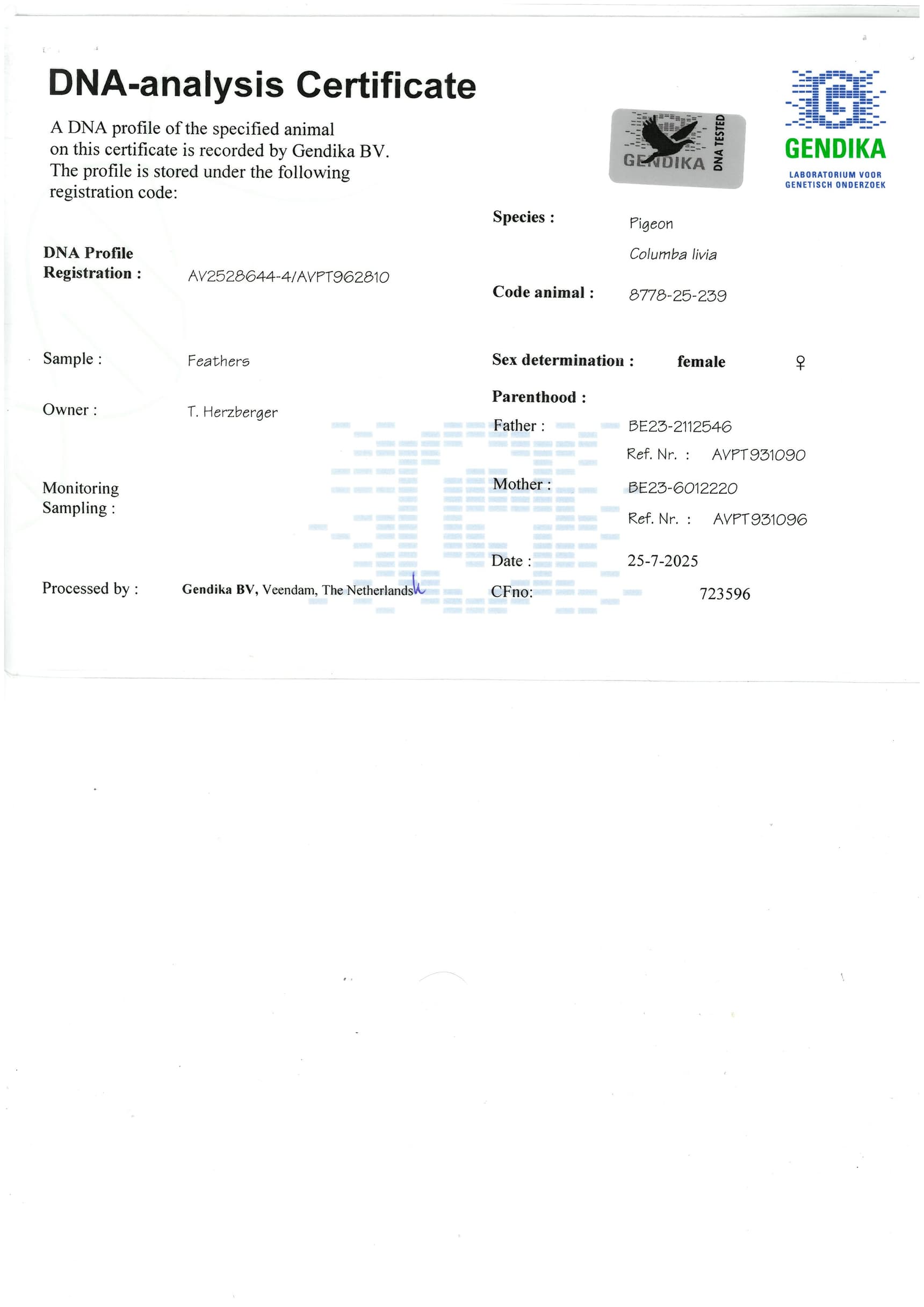 拍卖号 11 ”奥林匹克黎哥直孙女239”