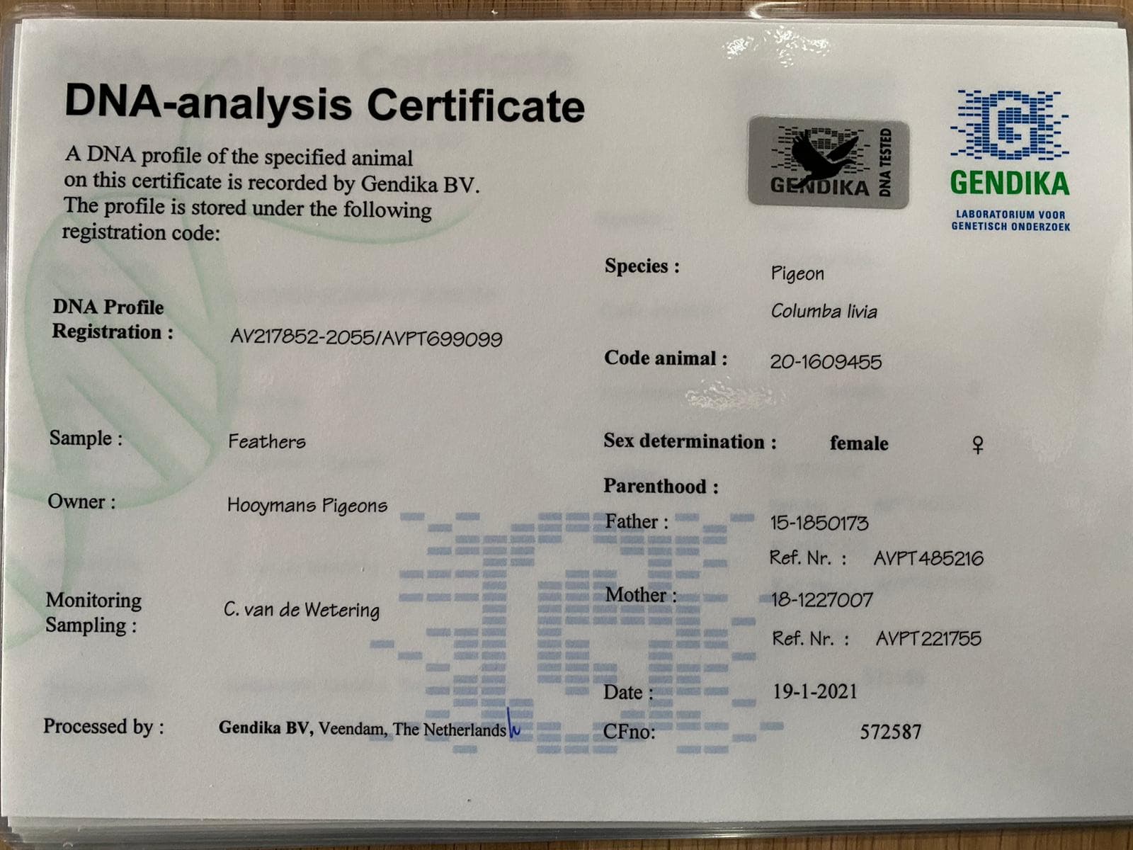 带DNA检验证书