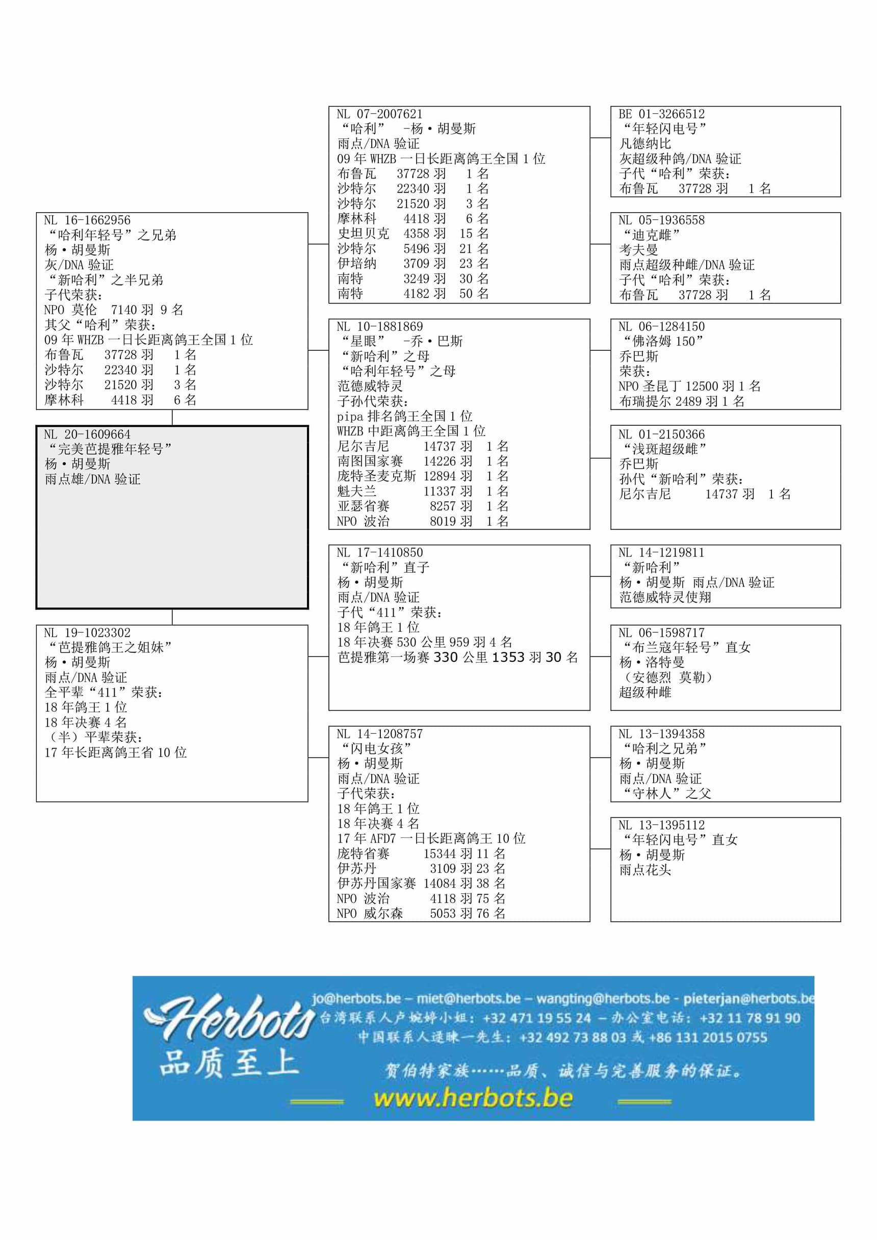 冠军种鸽“哈利年轻号” (子代荣获:NPO/国家赛8次前10名) 之全兄弟
