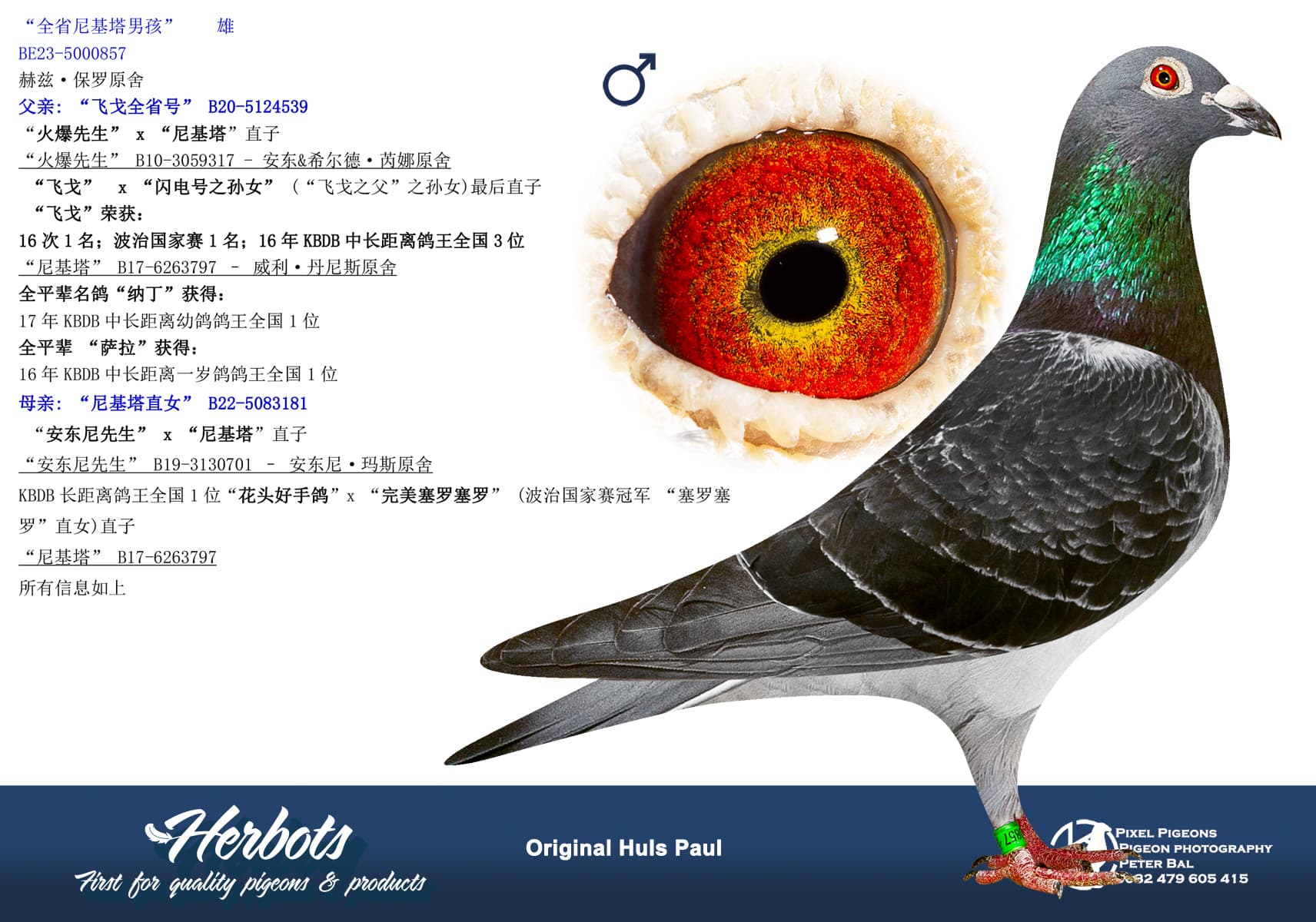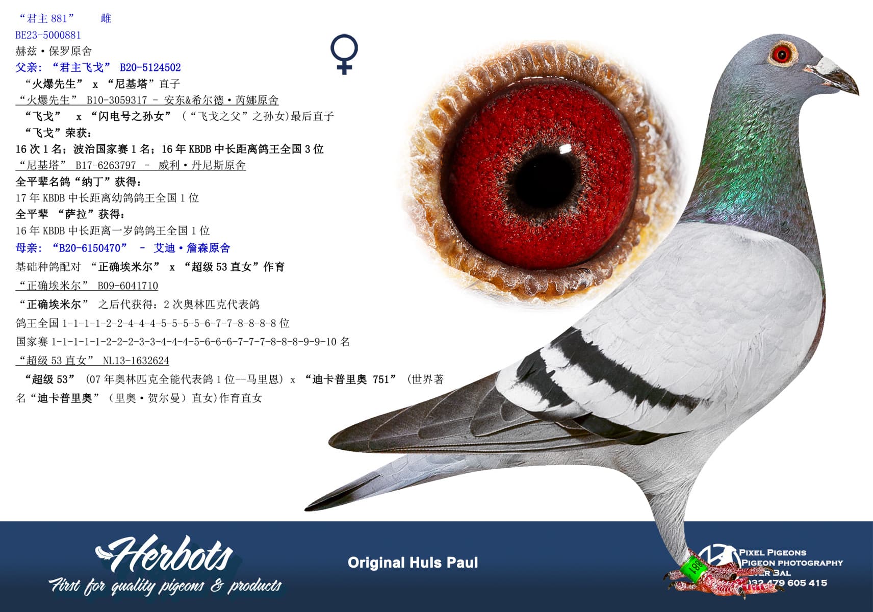 名鸽“年轻所向无敌” (省赛 2 次获得 1 名) x “纳塔莉亚” (波治国家赛 1 名)直子“博尔特小姐” B12-6123199 – 里奥·贺尔曼原舍