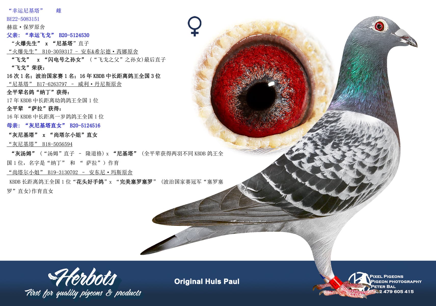 “灰汤姆” (“汤姆”直子 – 隆道格) x “尼基塔” (全平辈获得两羽不同 KBDB 鸽王全国 1 位,名字是“纳丁” 和 “ 萨拉”)作育