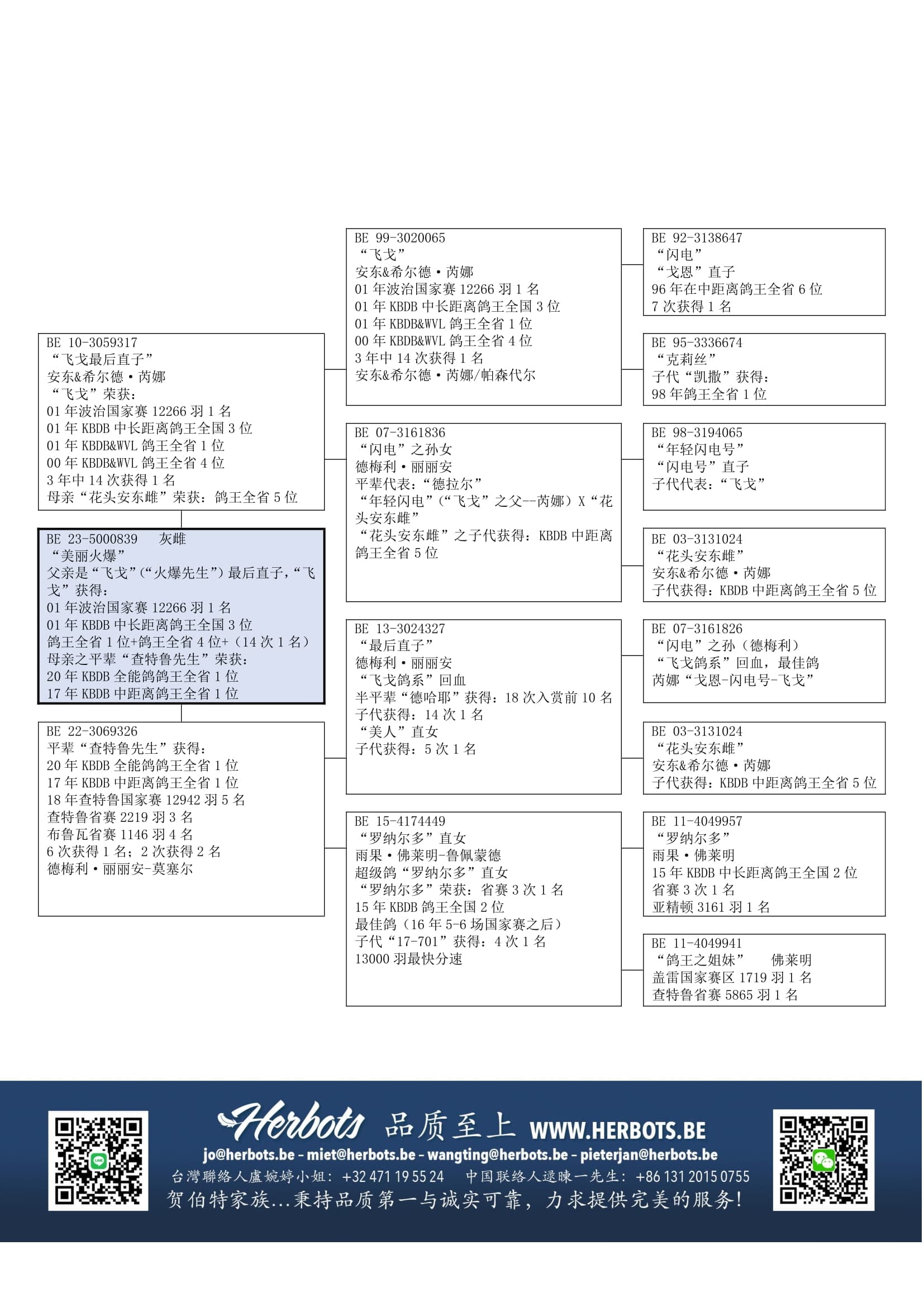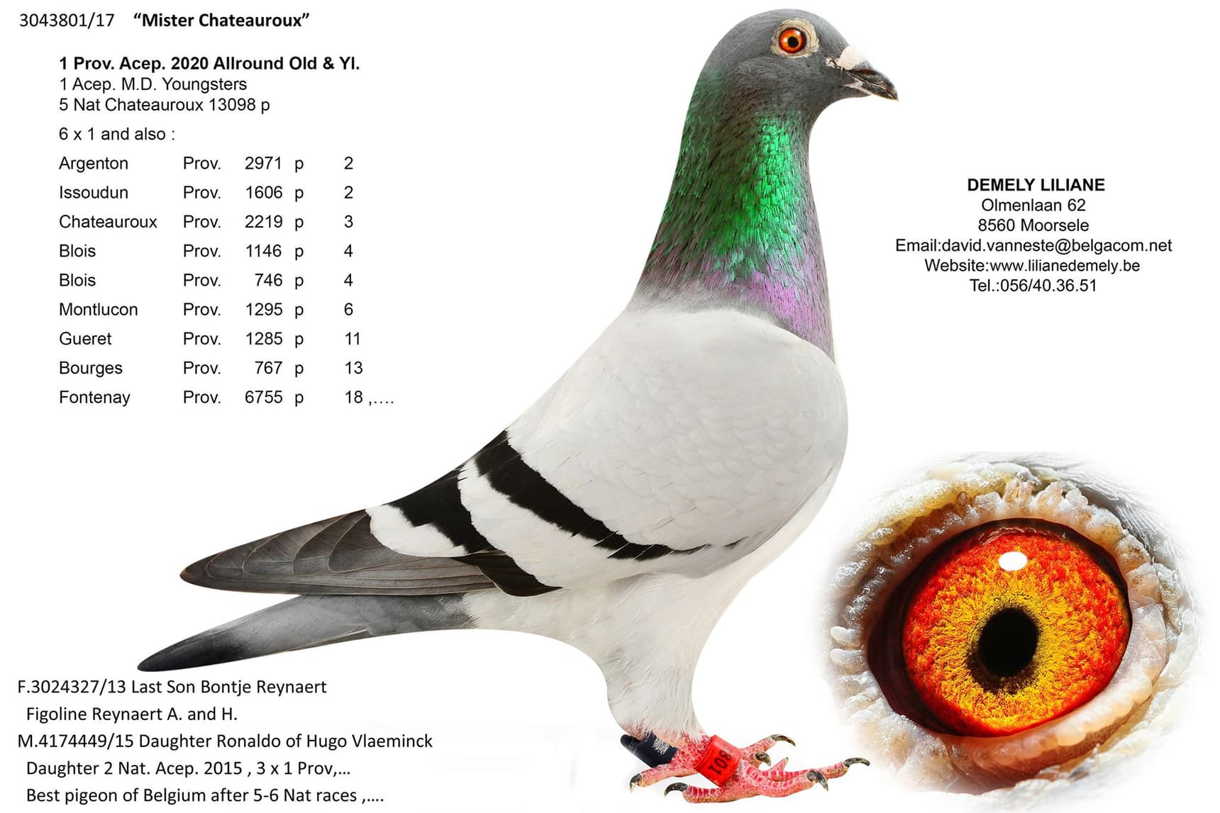 “B13-3024327” (“飞戈”鸽系回血) x “罗纳尔多直女” (15 年 KBDB 中长距离鸽王全国 2 位直女--雨果·佛莱明)直女