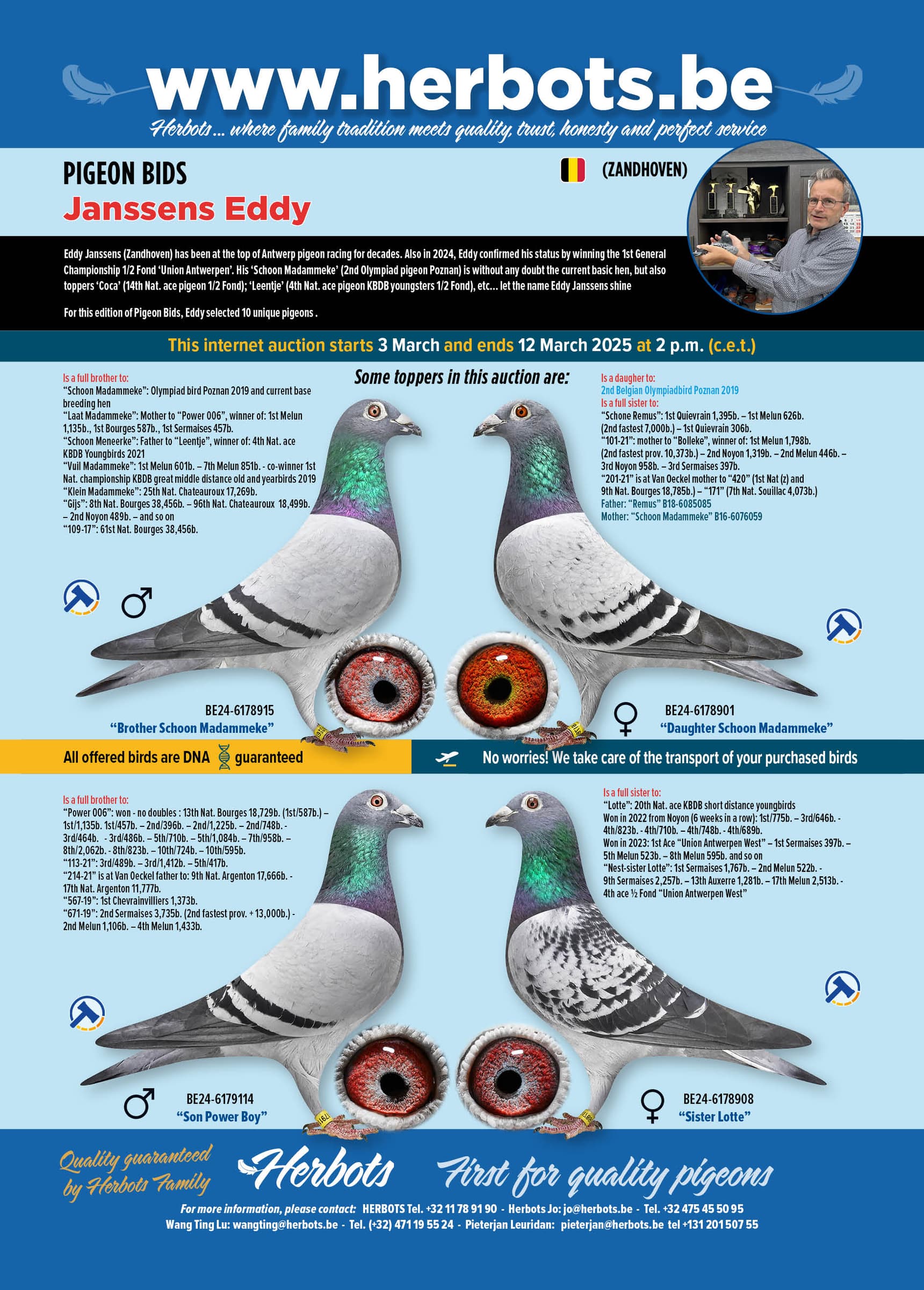 艾迪·詹森(Eddy Janssens,Zandhoven) 数十年来,一直是安特卫普赛鸽运动的巅峰。2024 年,艾迪赢得了安特卫普联盟中距离综合最佳鸽舍1位,更加固了自己的地位。