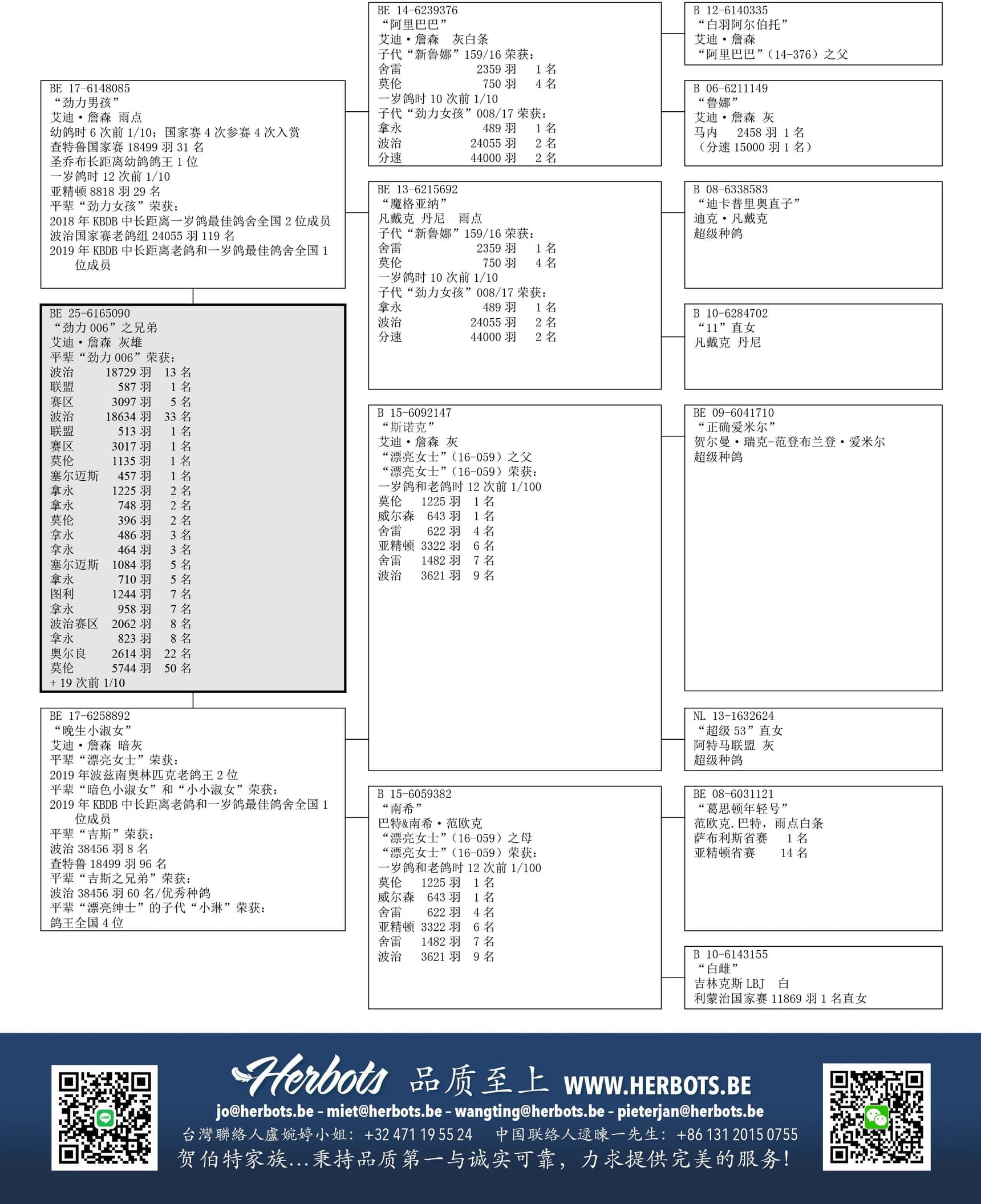 “暗色小淑女”:莫伦 601羽1名 – KBDB冠军鸽舍全国1位成员