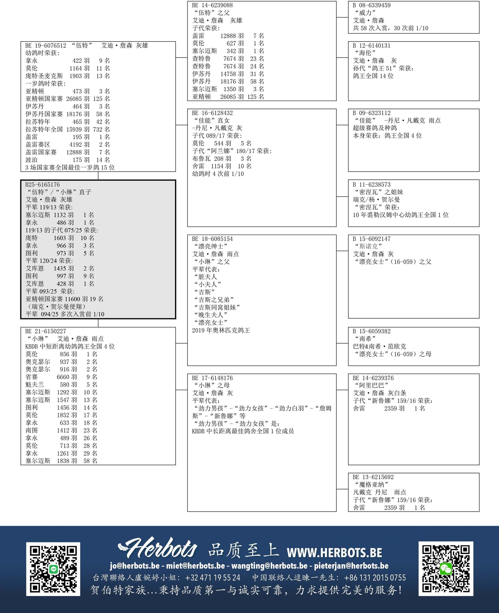 荣获: 3 场国家赛比利时最佳一岁鸽15位