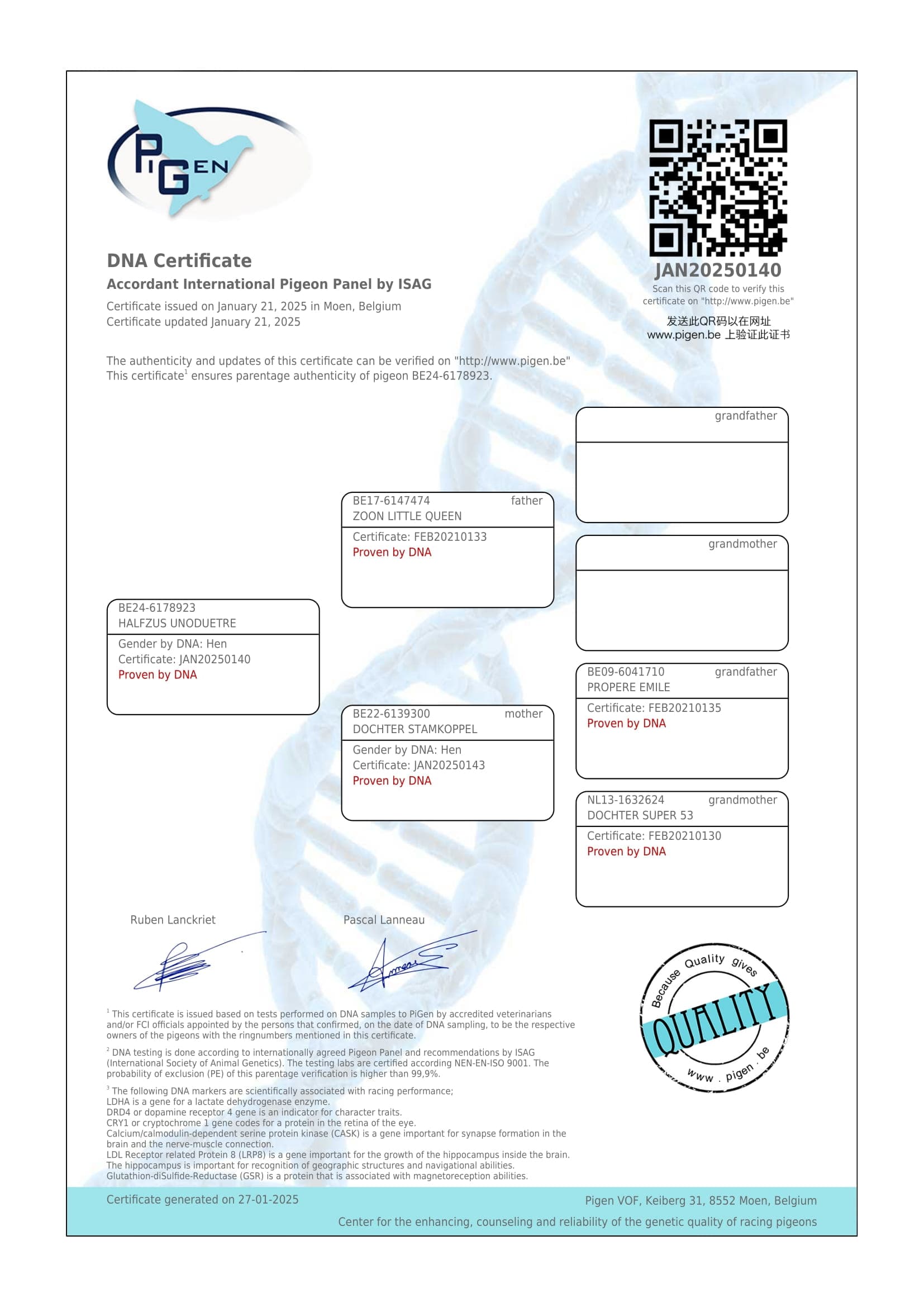 “鸽王保罗之父” (2024年“西部联盟”鸽王1位之父)